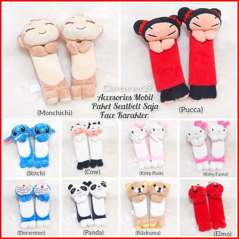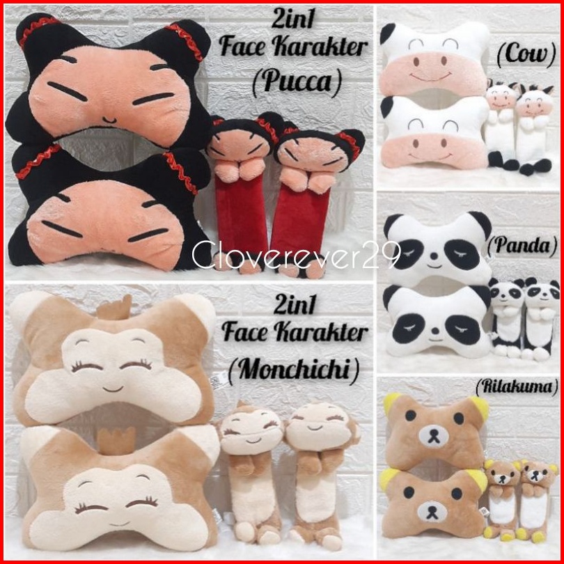 Bantal Mobil Set 3in1 Face Karakter Aksesoris Mobil Bantal Headrest Mobil Boneka