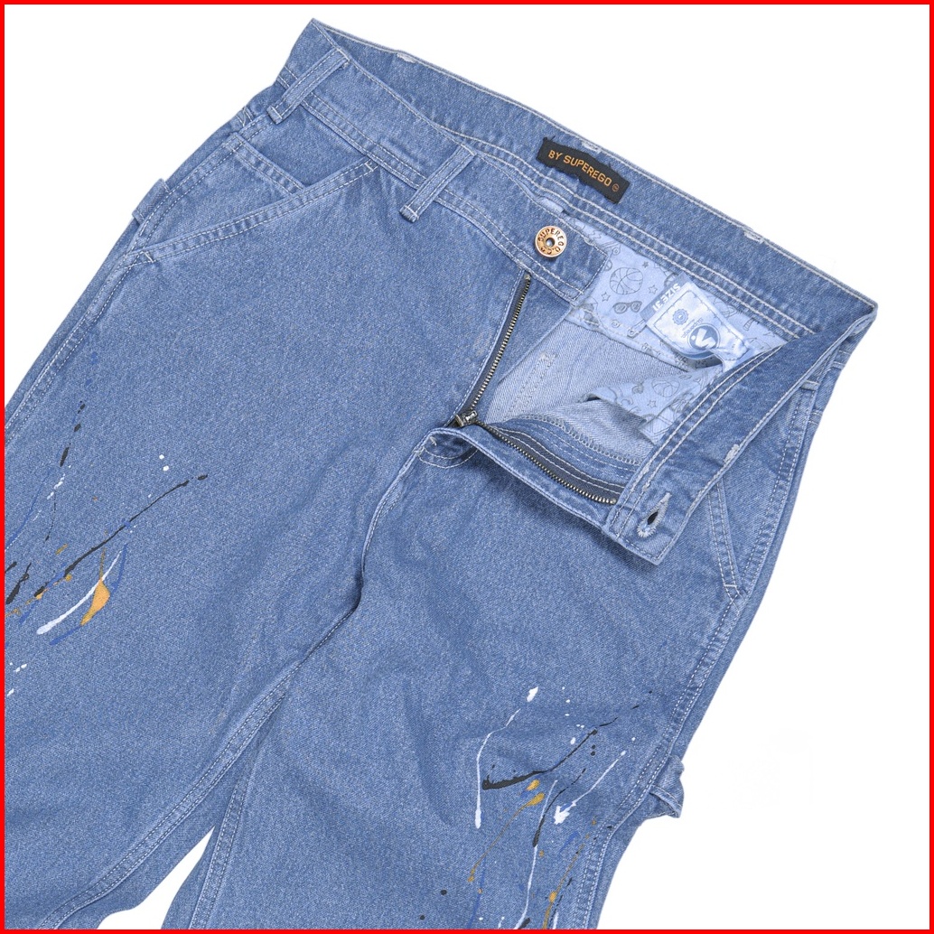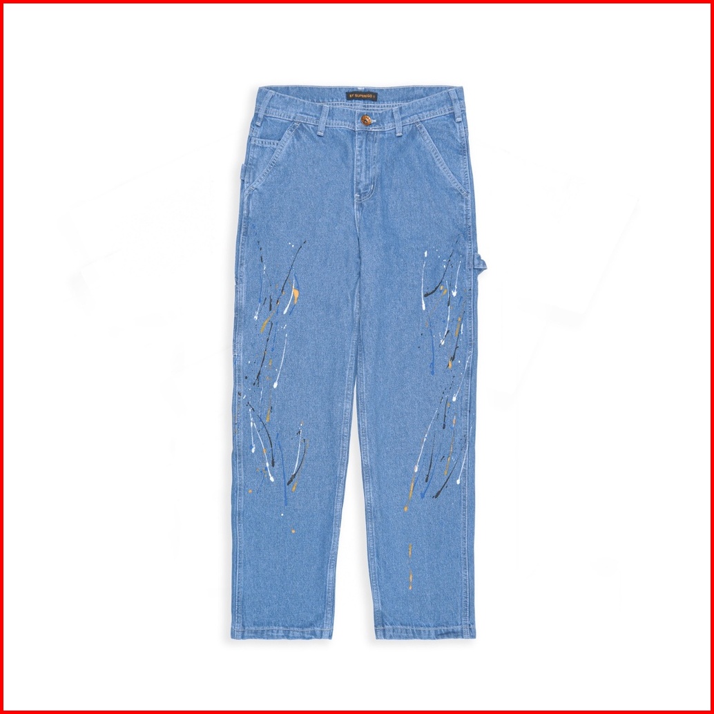 Superego Celana Carpenter Denim Jeans Panjang Utility Standar Paint Snow Blue Splash Cps03c
