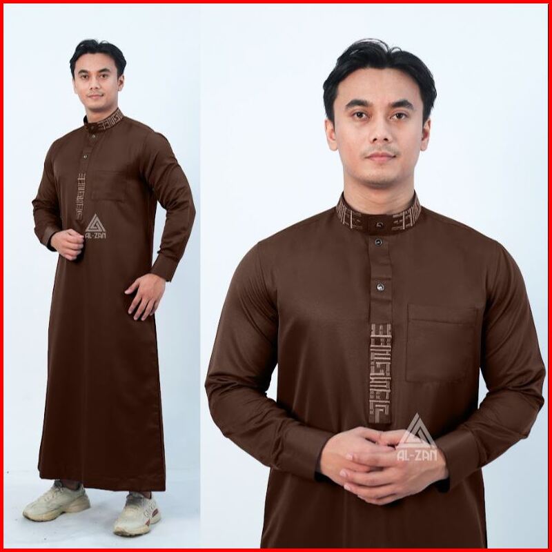 Jubah Pria Muslim Slimfit Jubah Gamis Pria Lengan Panjang Bordir Busana Muslim Baju Jubah Muslim Katun Toyobo Manset Dew