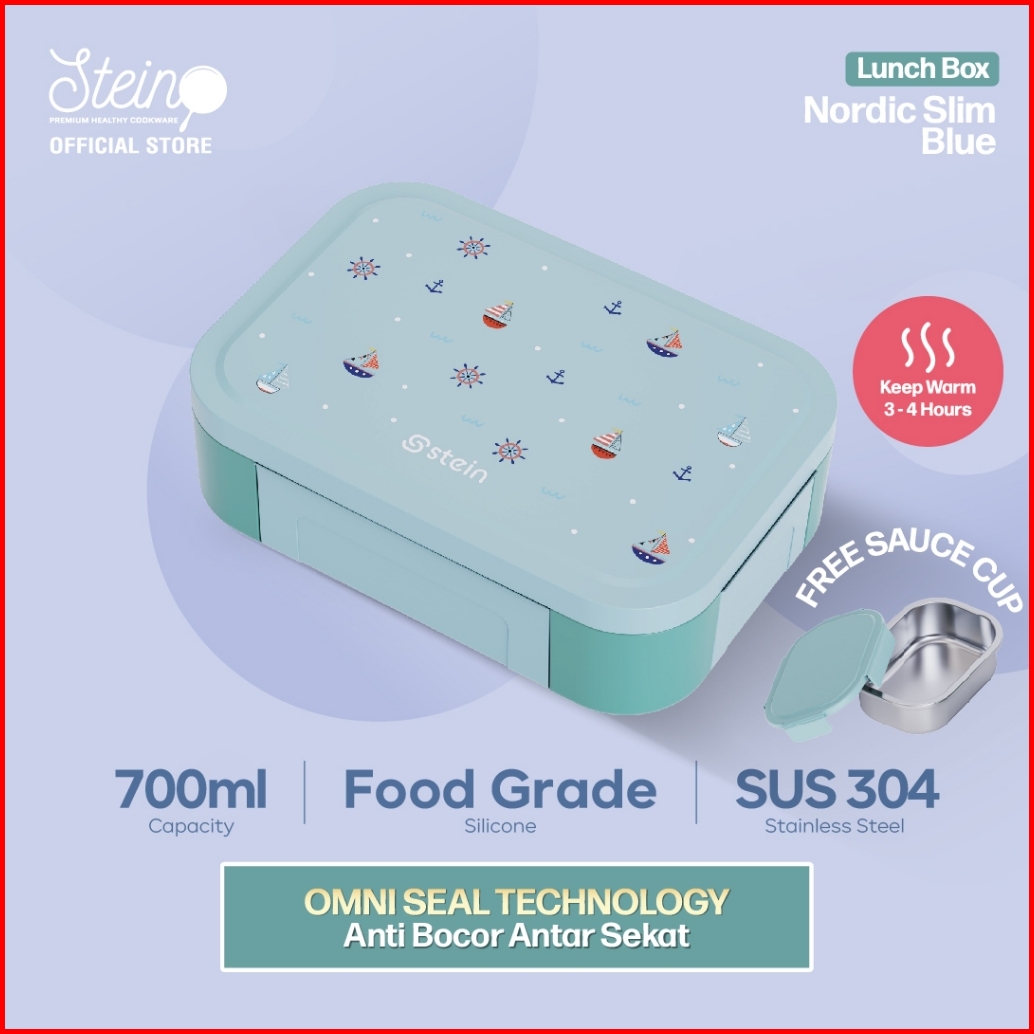Stein Lunch Box Stainless 304 Slim - Kotak Makan Stainless 700ml Free Sauce Cup