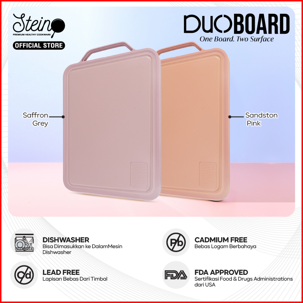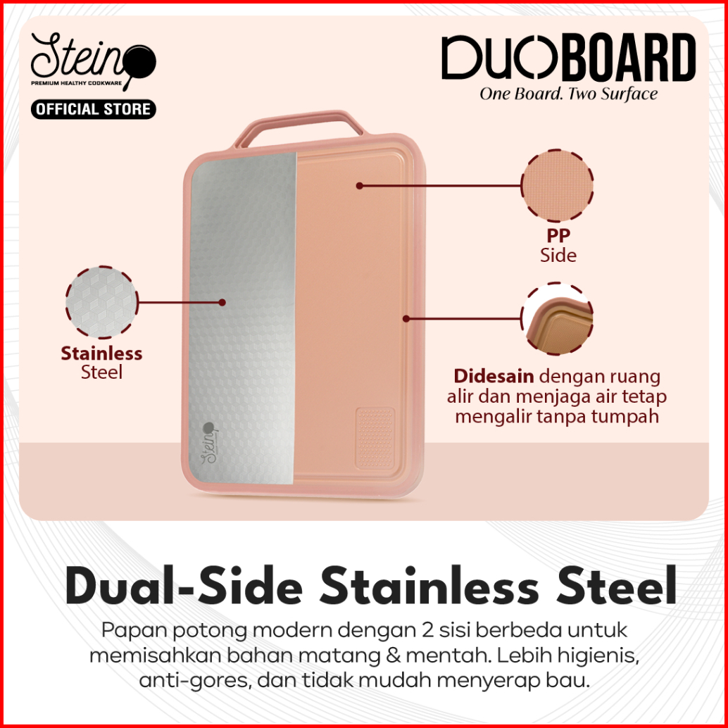 Stein Duo Board - Talenan Dua Sisi Steinless Steel 304 Dan Plastik Food Grade