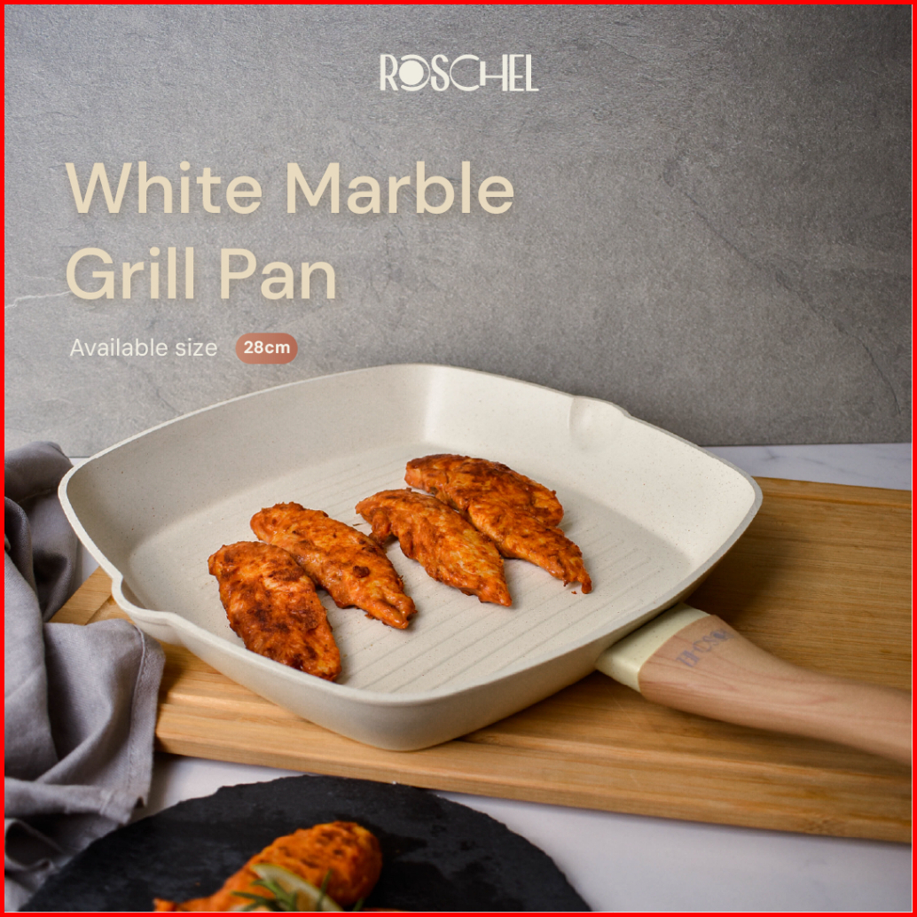 Roschel Beneta White Marble Coating Non-stick Grill Pan Wajan Penggorengan Pemanggang Bbq 28 Cm