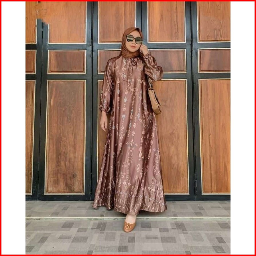 Dress Gamis Wanita Gamis Pesta Mewah Elegan Motif Bunga Bunga Gamis Silky Premium Gamis Lebaran 2025