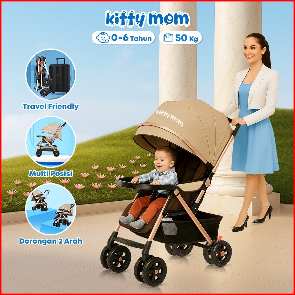 Kitty Mom - Babyplay - Stroller Bayi Lipat Travelling Stroller Newborn 2 Arah Cabin Size