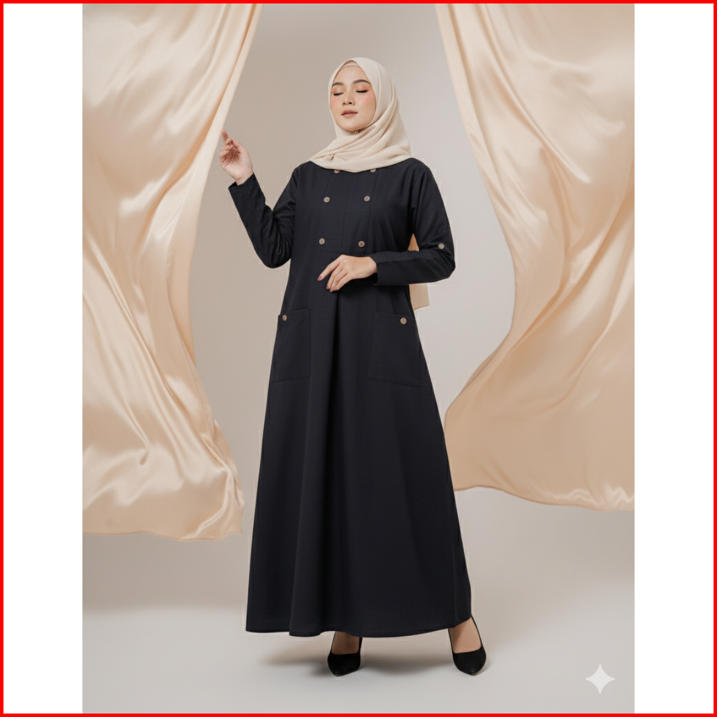 Gamis Lebaran 2026 Model Terbaru Bahan Linen Premium Lengan Panjang