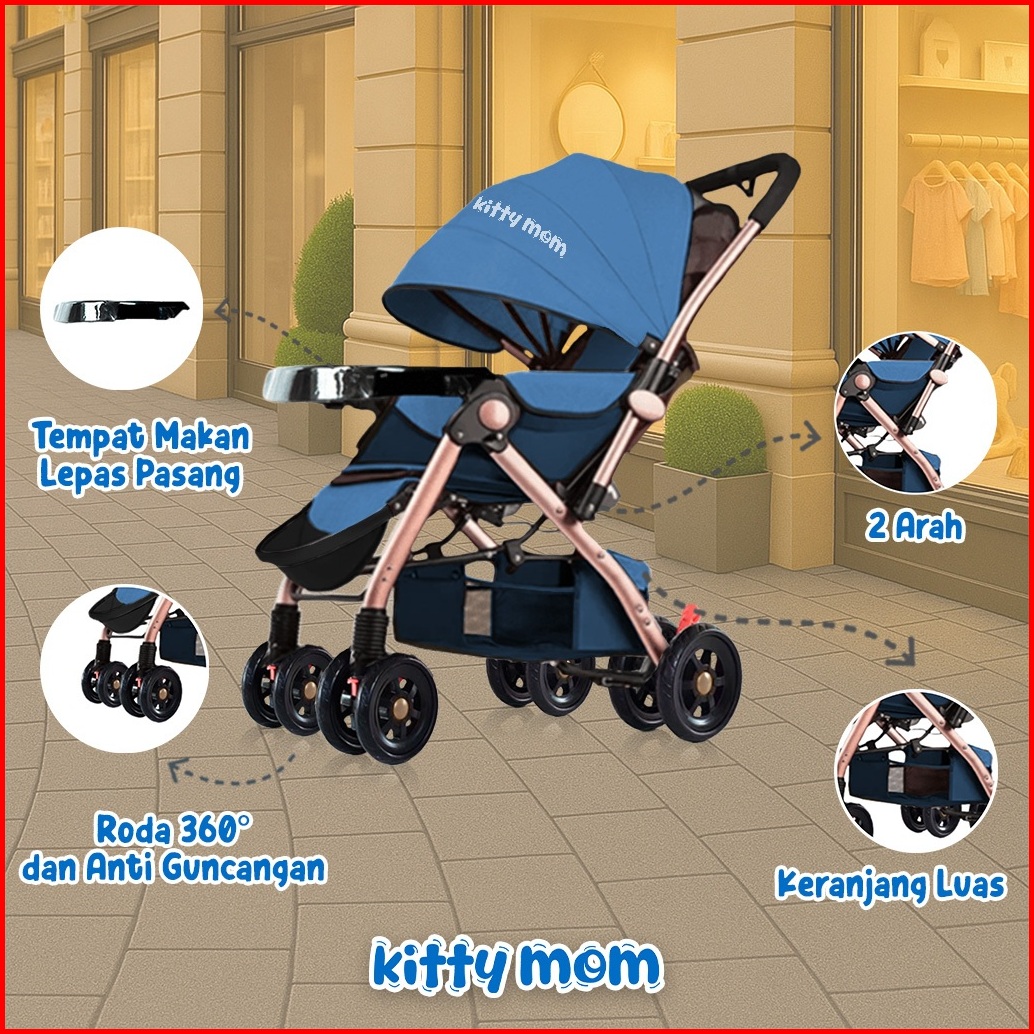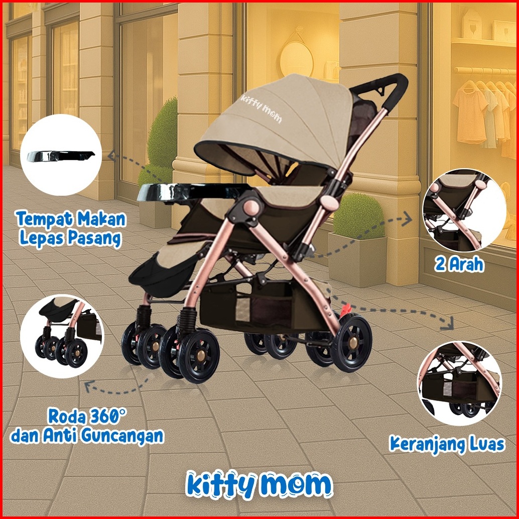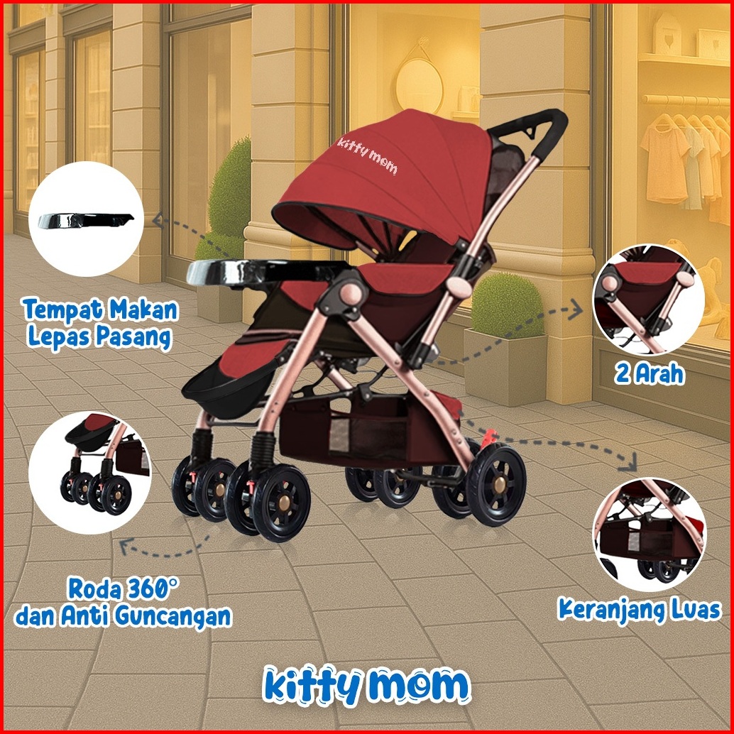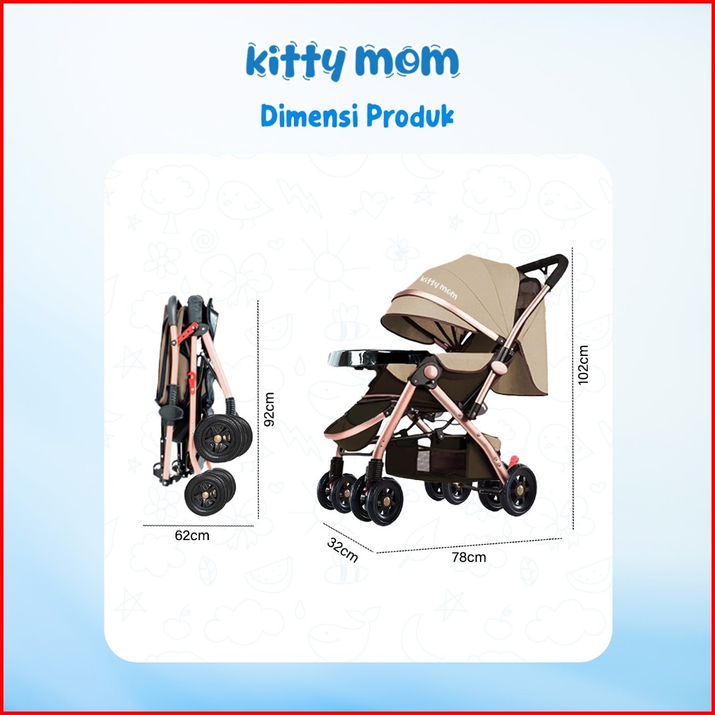 Kitty Mom Baby Stroller - Stroller Bayi Lipat Travelling Stroller Newborn 2 Arah Cabin Size Dorongan Bayi