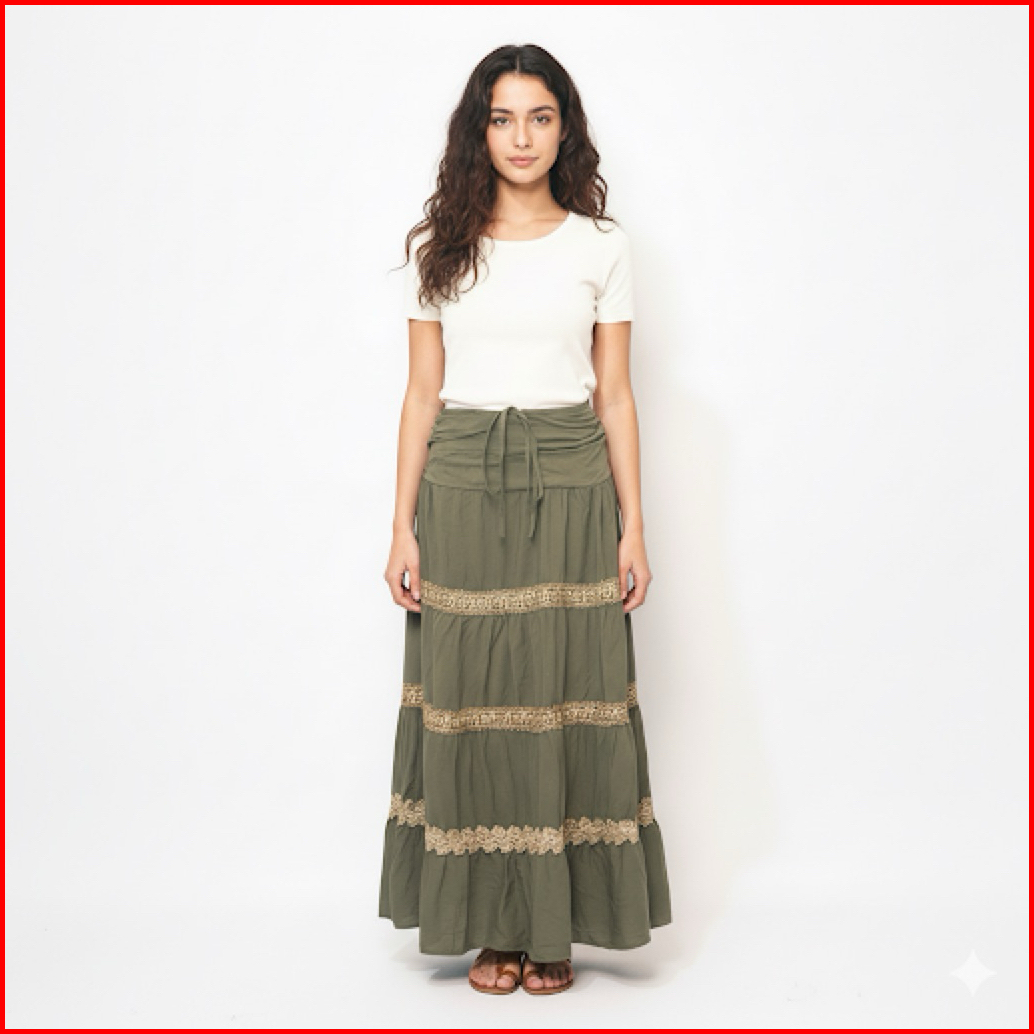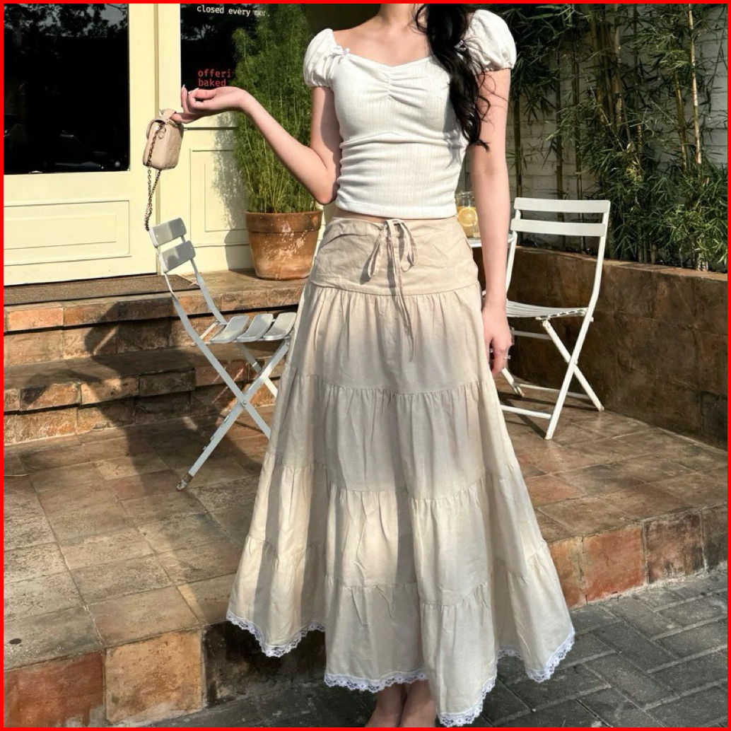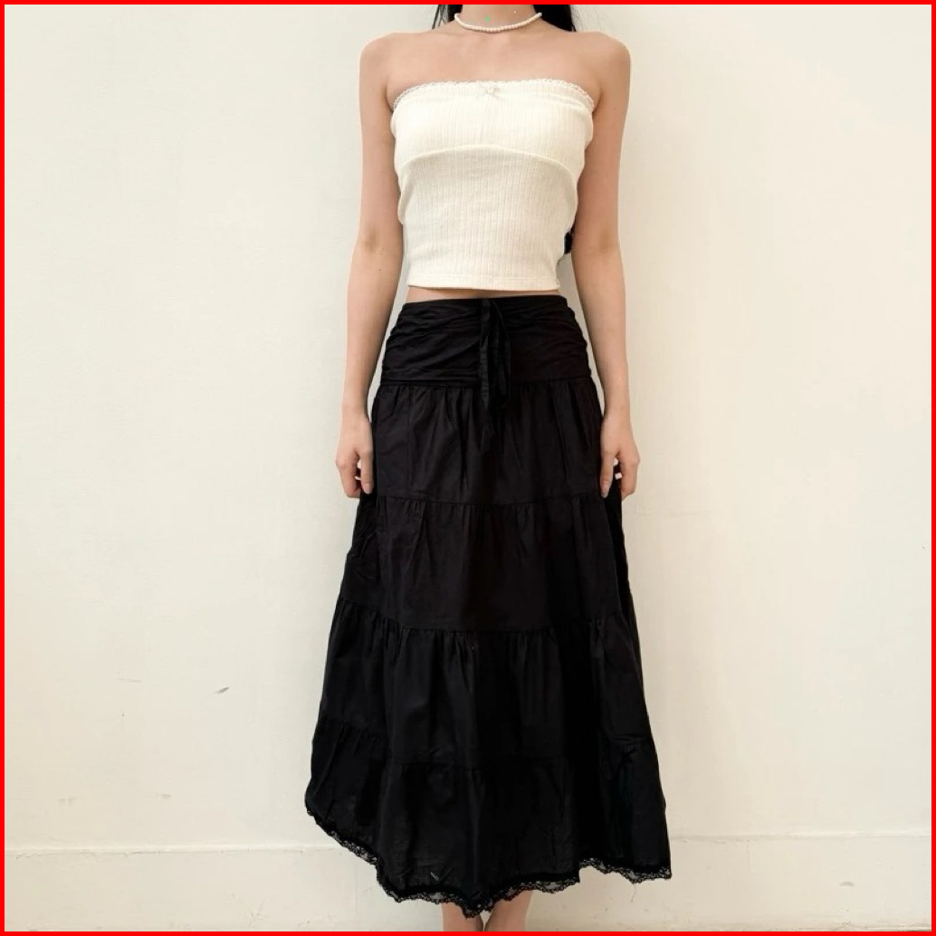 Ferme Label Maxi Lace Skirt Rok Korean Style