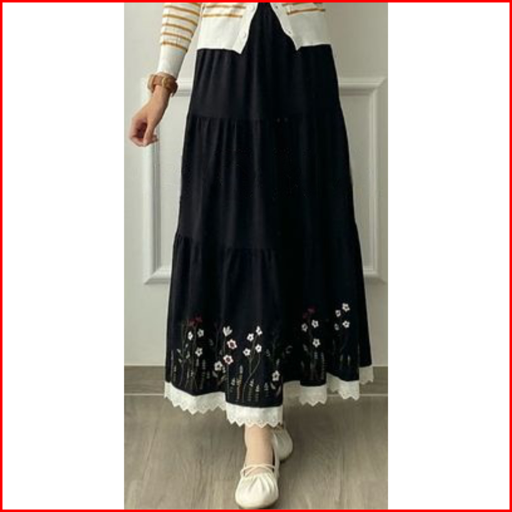 Airolla Floral Embroidery Rok Bunga Korea Style Susun Tiga Tingkat Bordir Skirt