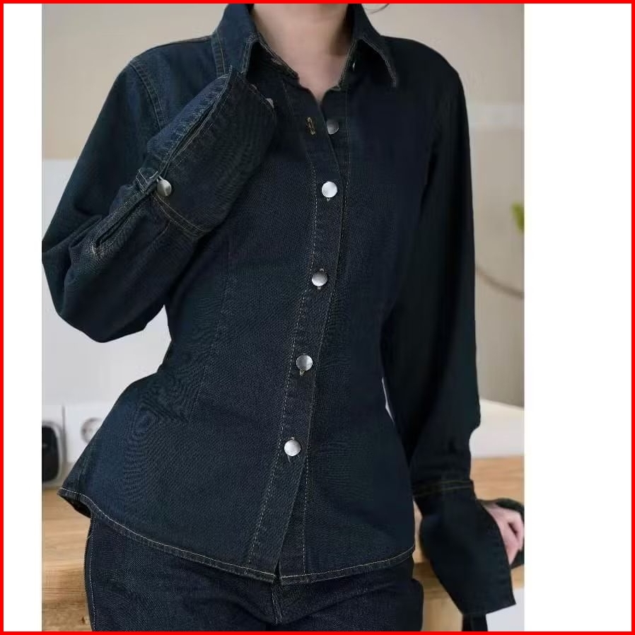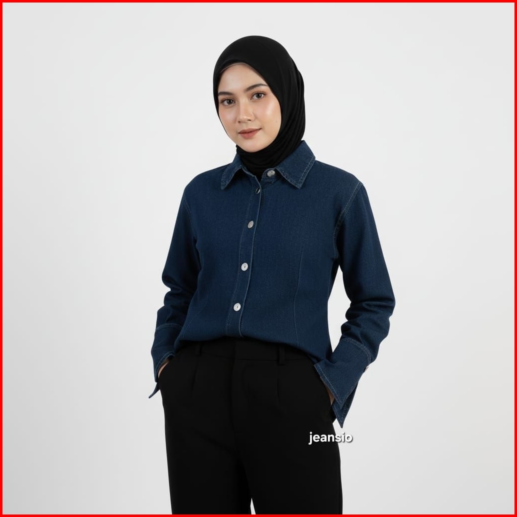 Jeansio Julia Blouse Top Slim Fitted Shirt Blouse Denim Wanita Fit Body Kemeja Premium Wanita Casual