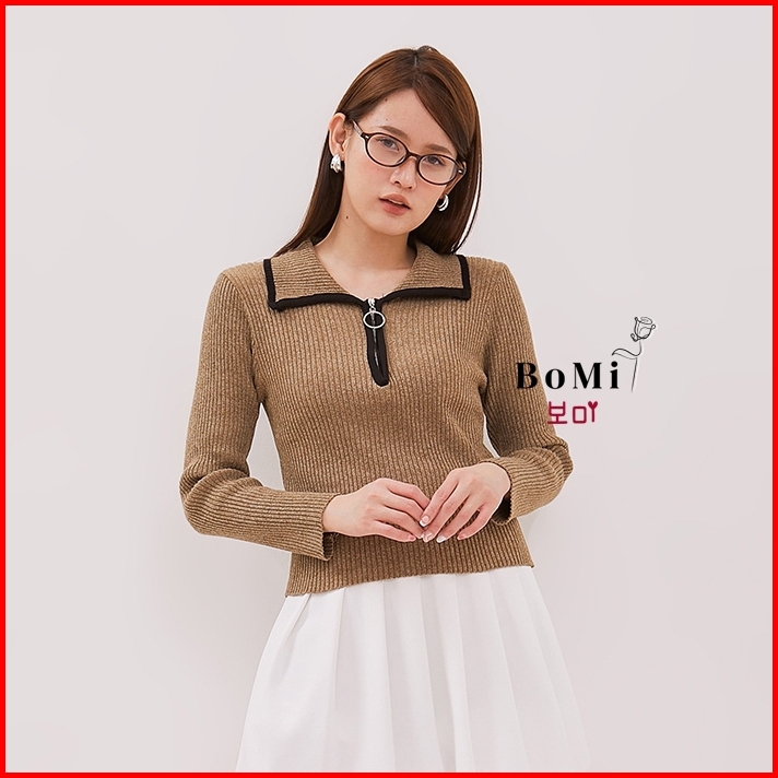 Bomi - Seo Yeon Top Atasan Wanita Korea Knit Zipper Lengan Panjang Long Sleeve Bahan Premium Murah