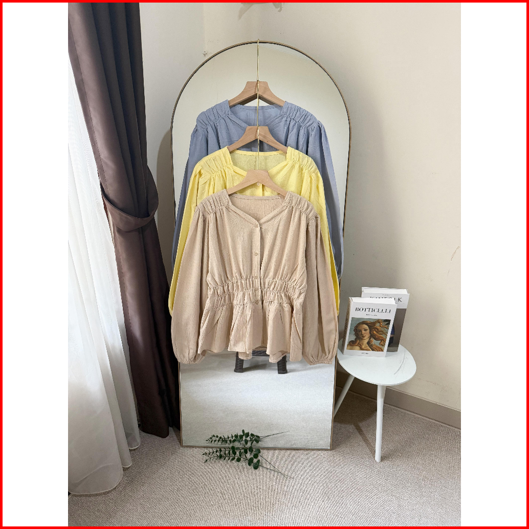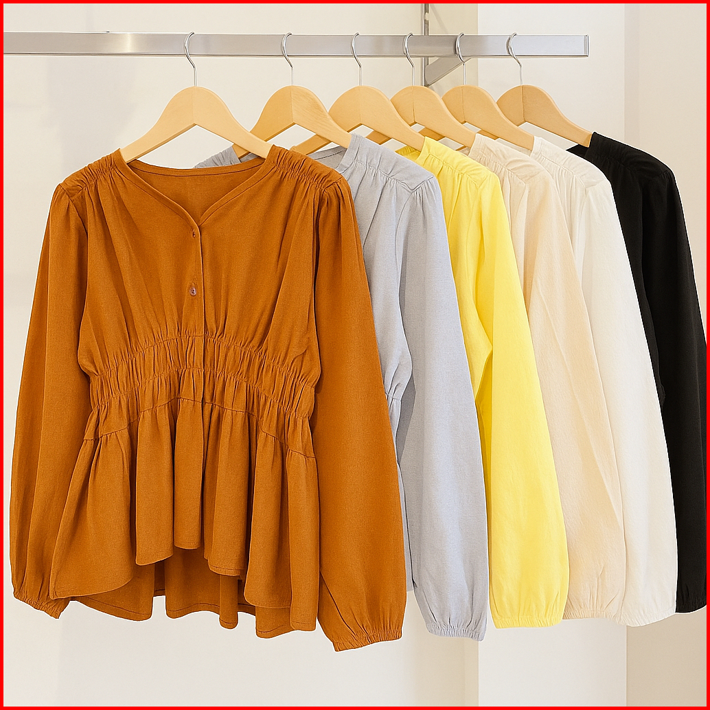 Premium Blouse Wanita Atasan Kerut Depan Linen Lengan Panjang Nyaman Anggun Dan Stylish