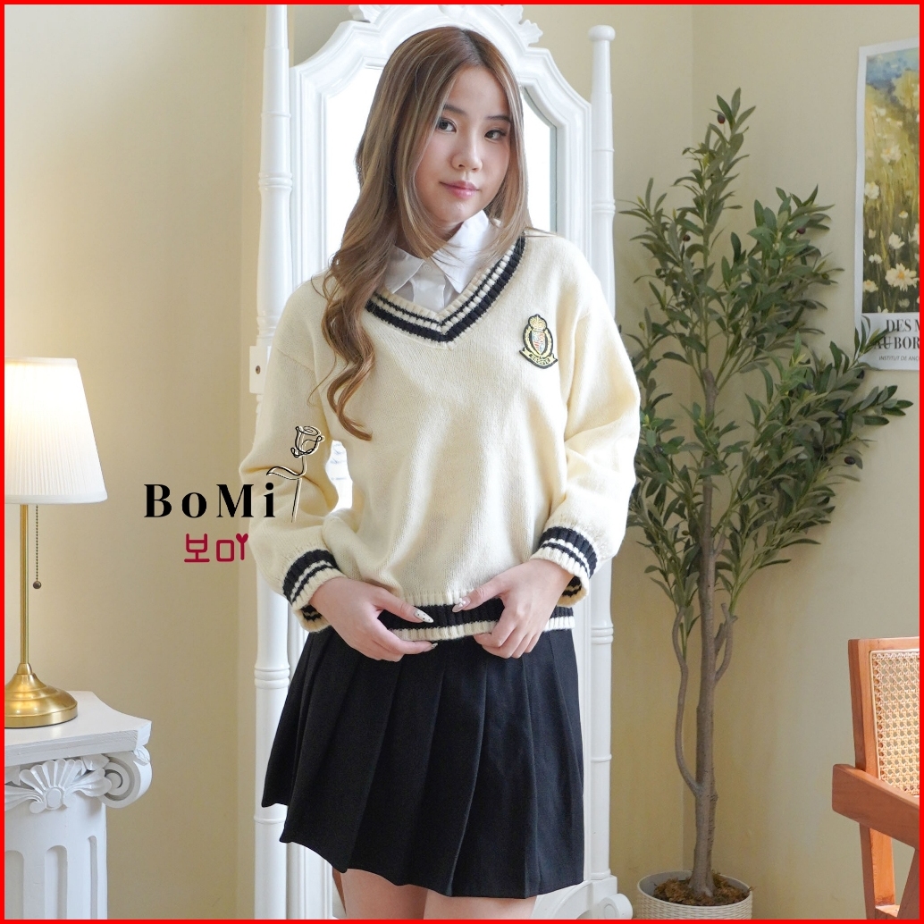 Bomi - Noelle Korean Style Sweater Sekolah Cardigan Atasan Wanita Lengan Panjang Long Sleeve Knitwear Premium Outer
