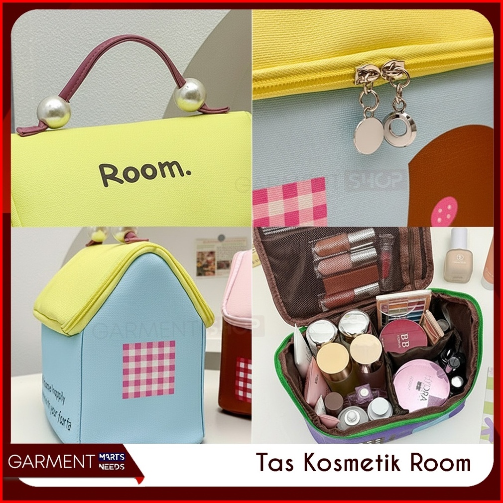 Tas Kosmetik Room House Karakter Lucu Pouch Penyimpanan Skincare Alat Makeup Organizer Travel Multifungsi
