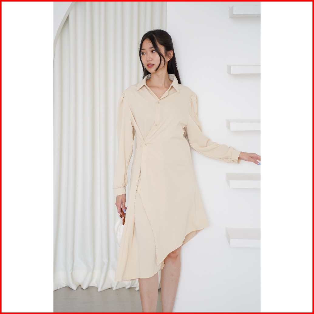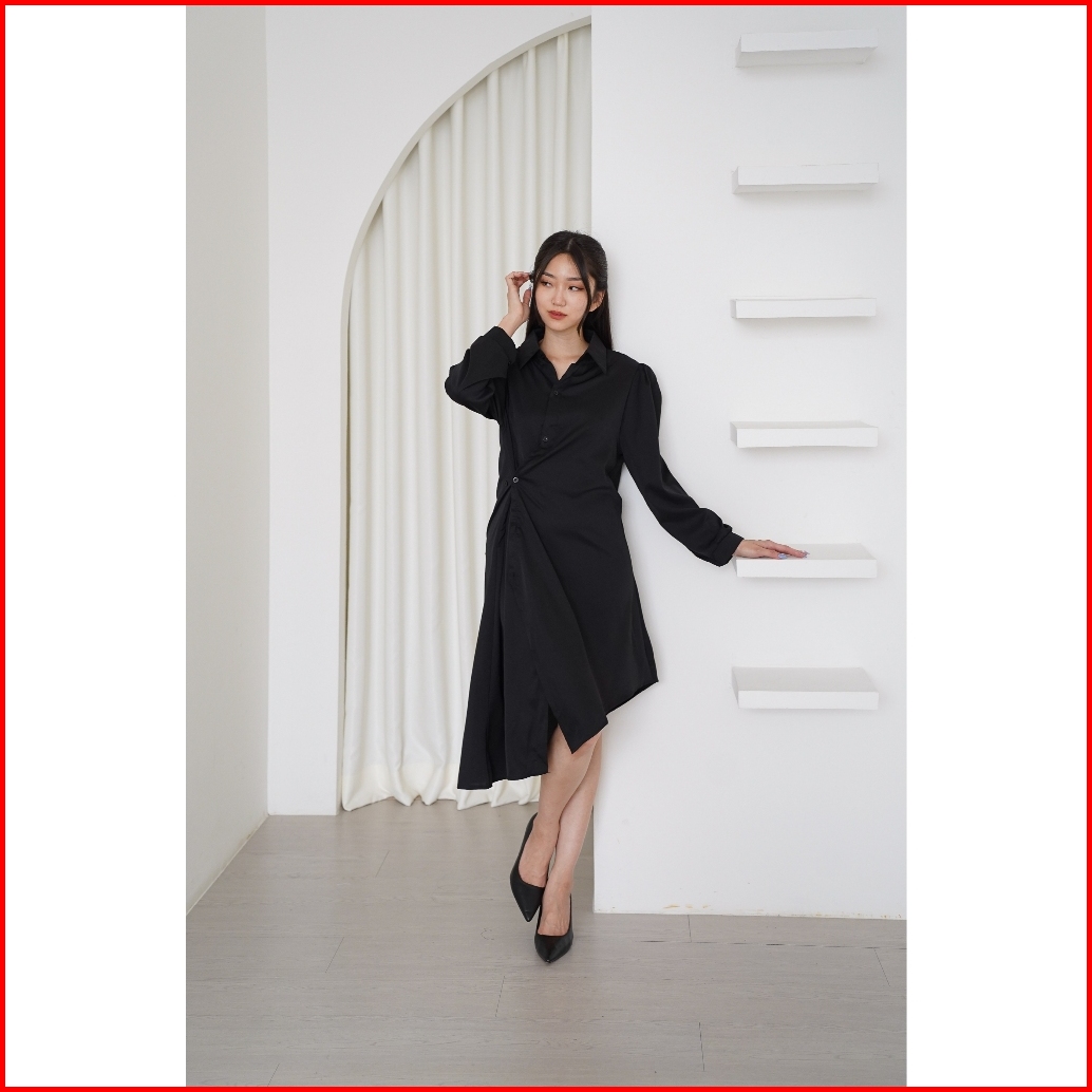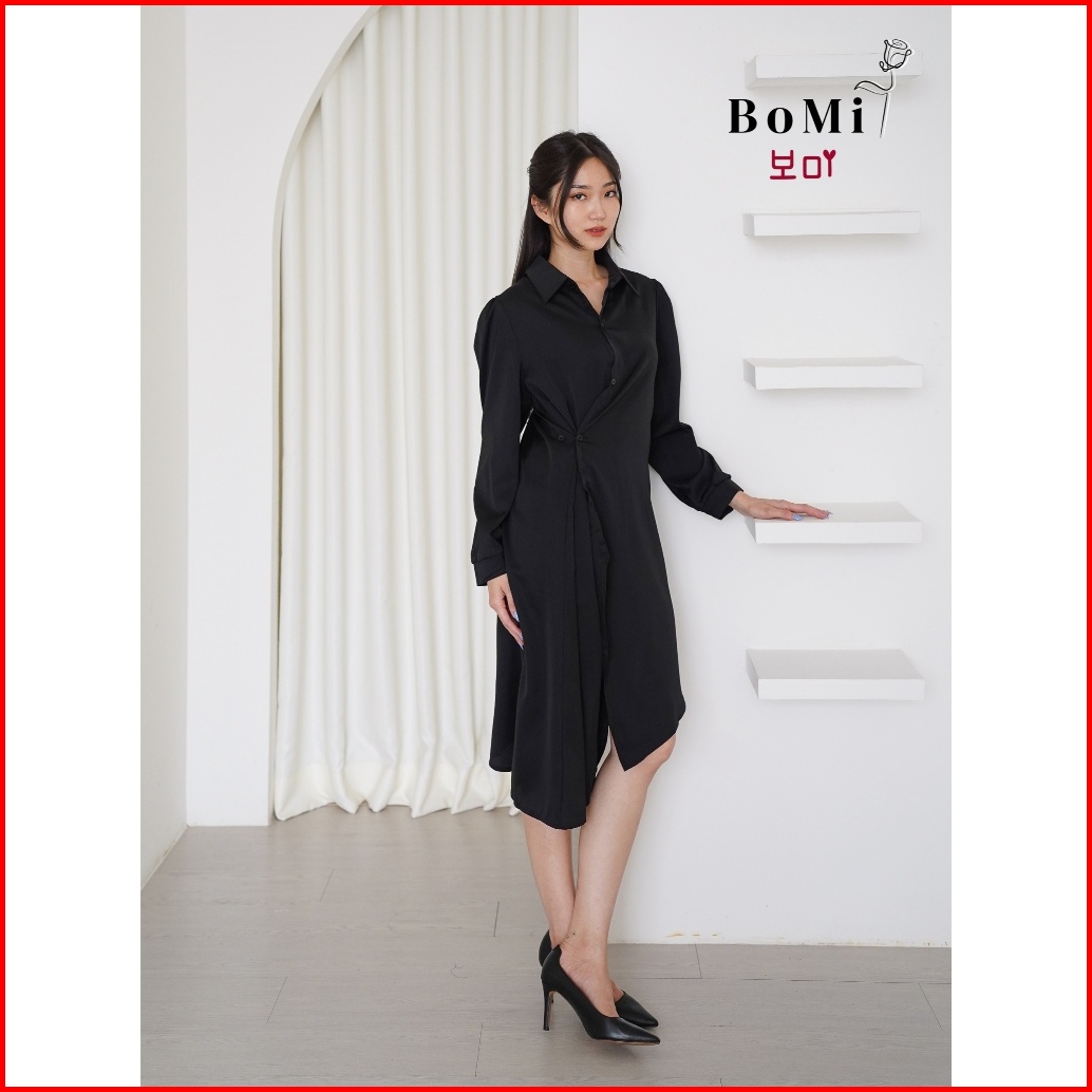 Bomi - Jihyo Shirt Dress Premium Korean Work Kerja Simple Basic Kemeja Button Girl Boss Vibes