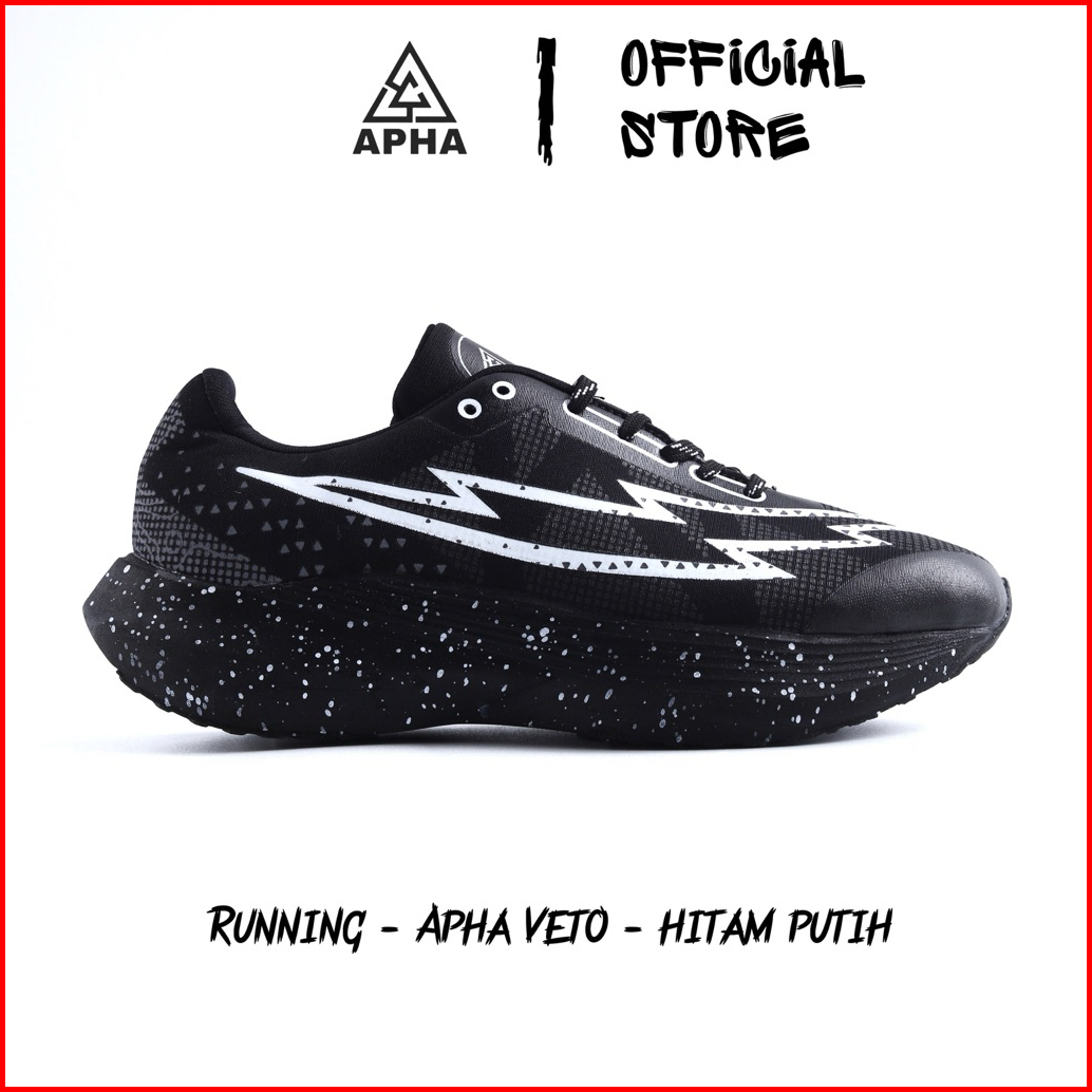 Apha - Sepatu Running Apha Veto Hitam Putih - Sepatu Lari