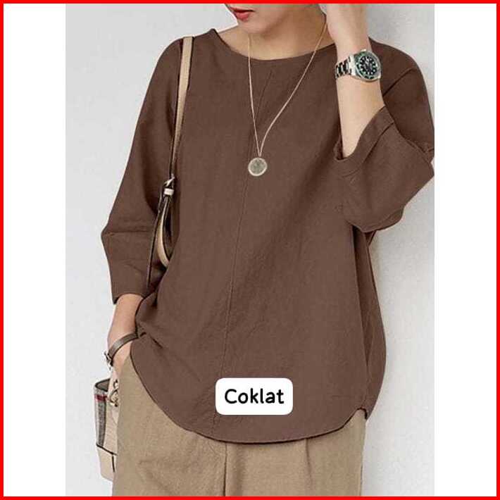 Tevishu Blouse Dapat 2 Pcs - Atasan Wanita Rayon Twill Polos Top Blouse Basic Wanita Ternyaman