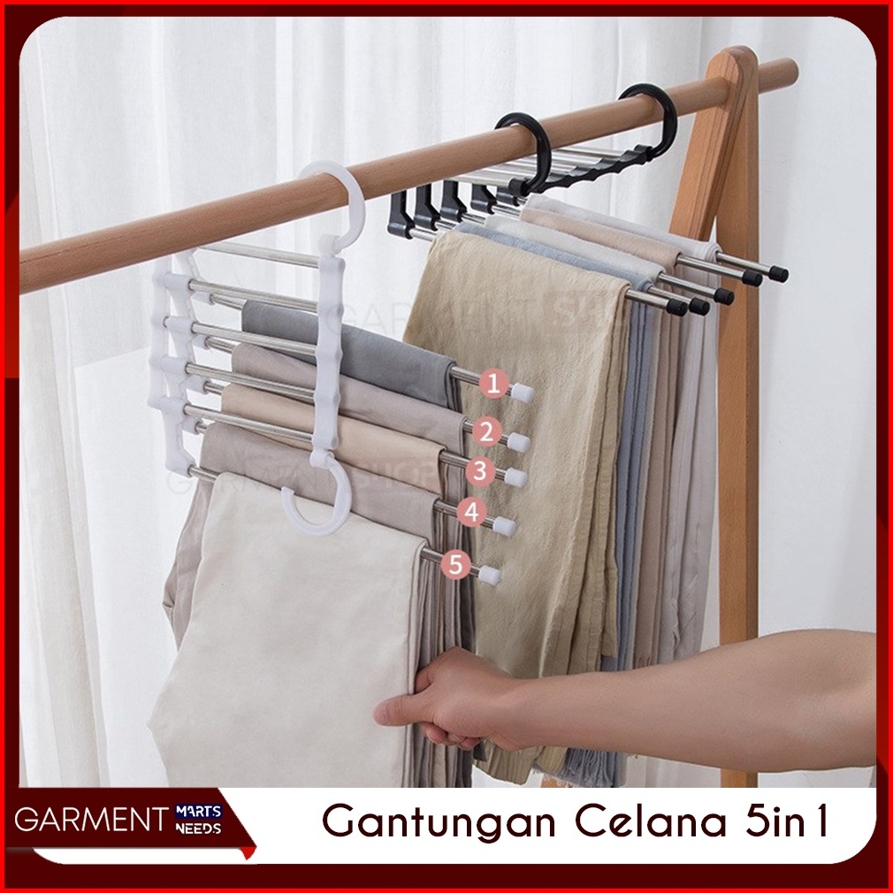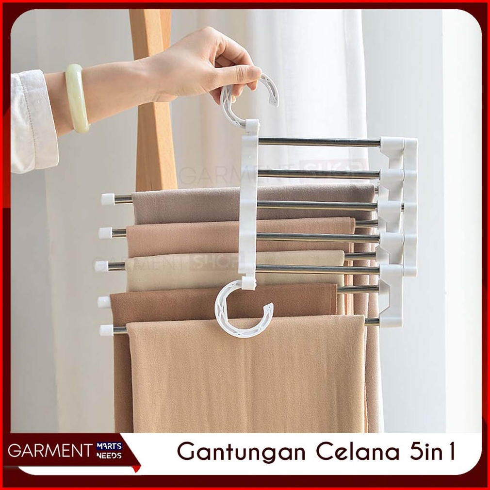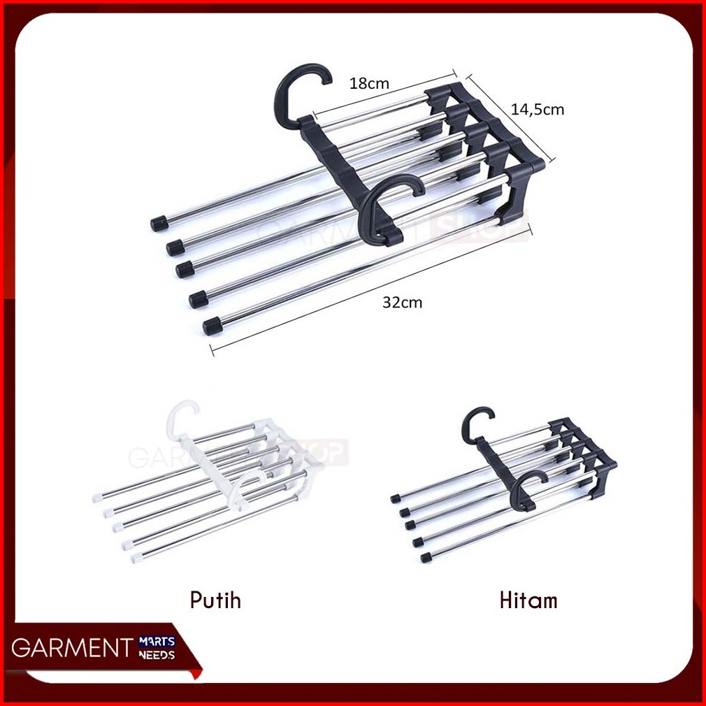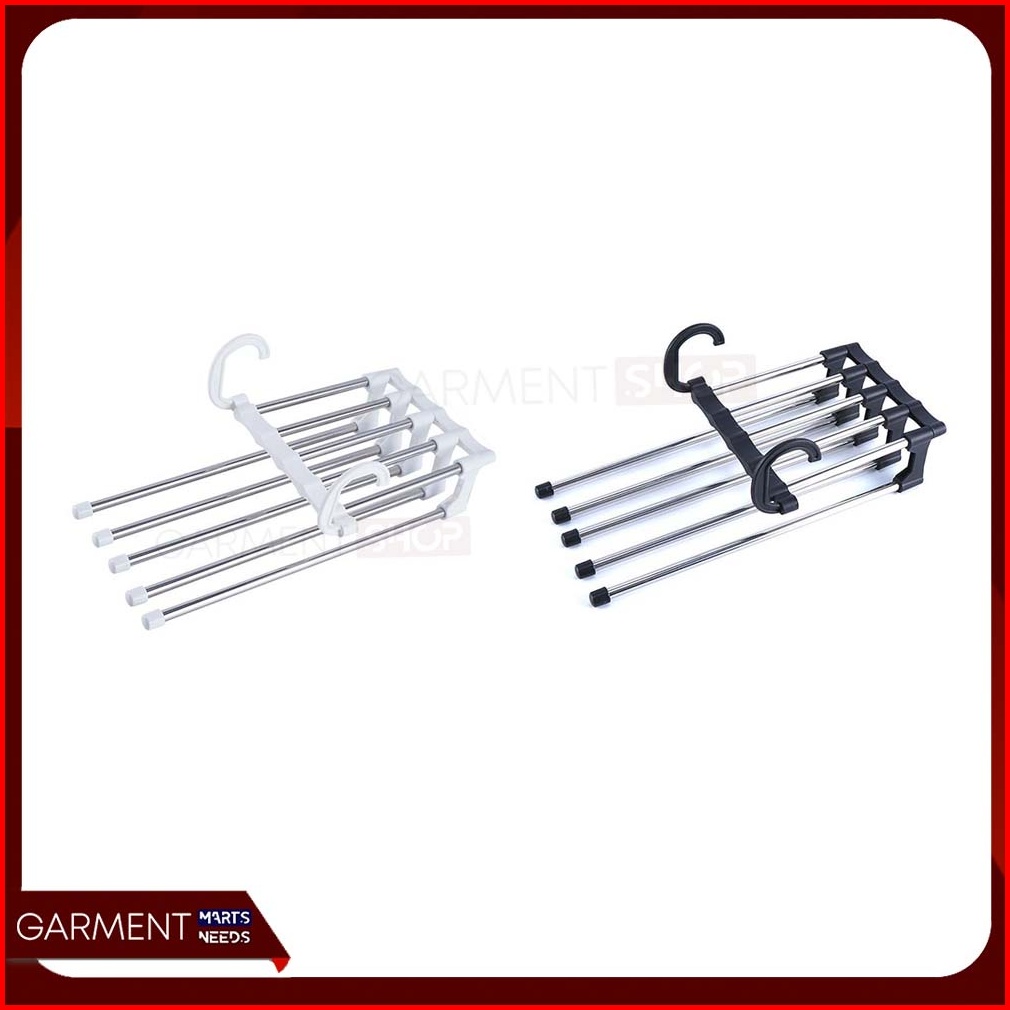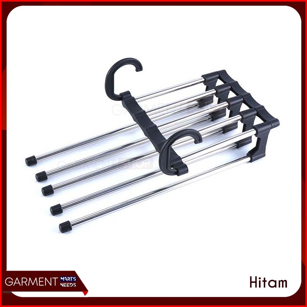 Magic Hanger Celana 5 In 1 Gantungan Baju Jilbab Stainless Handuk Portable Lipat Multifungsi