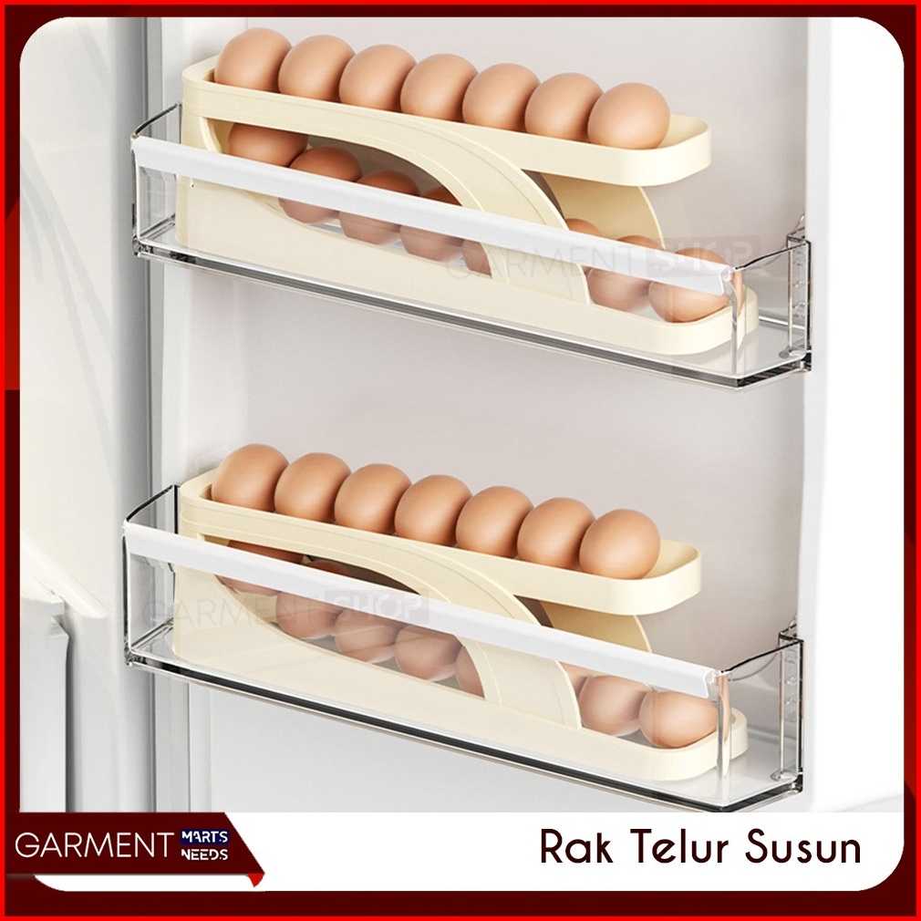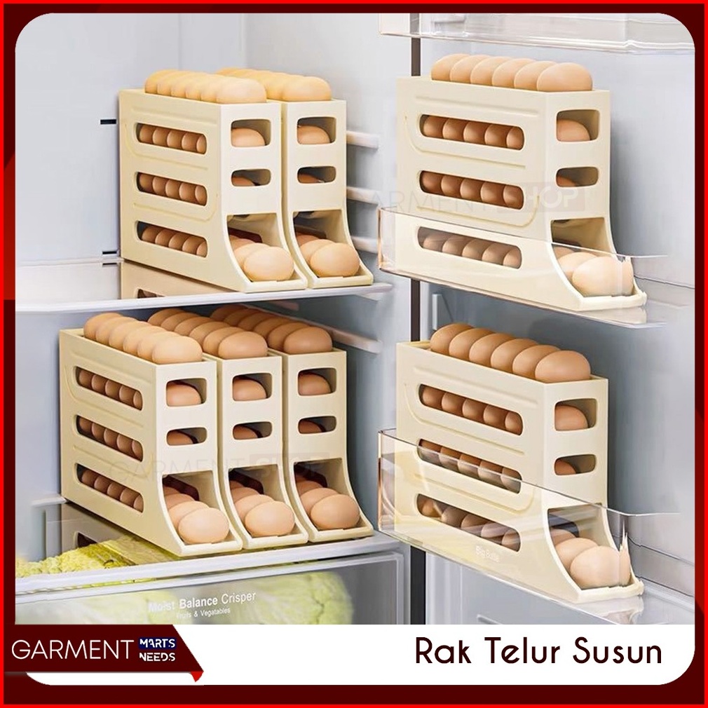 Rak Telur 4 Tingkat Bergulir Otomatis Tempat Dispenser Penyimpanan Telor Susun Egg Box