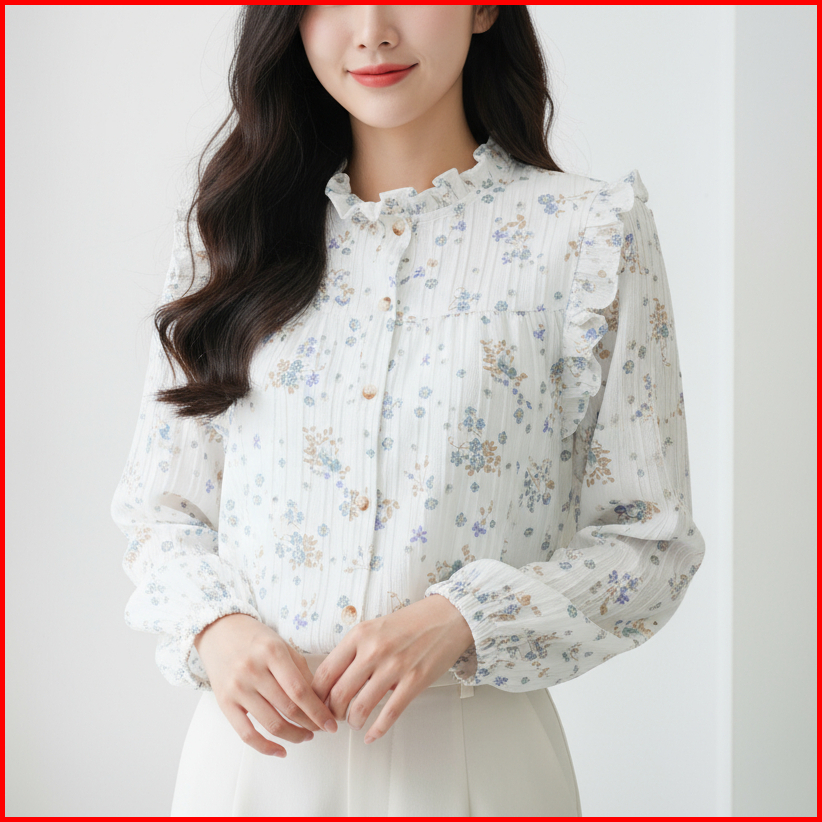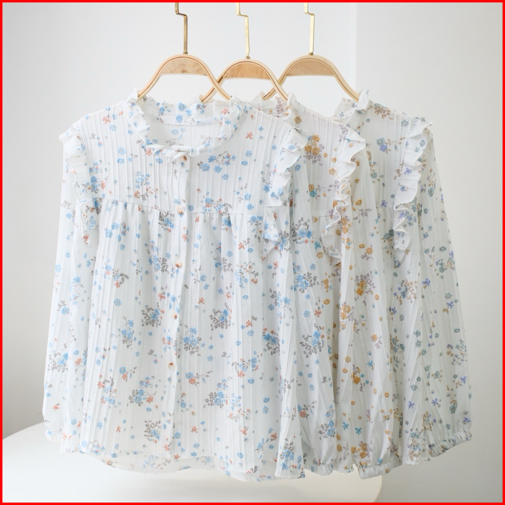 Blouse Wanita Motif Bunga Atasan Wanita Lengan Panjang Atasan Flowers Style
