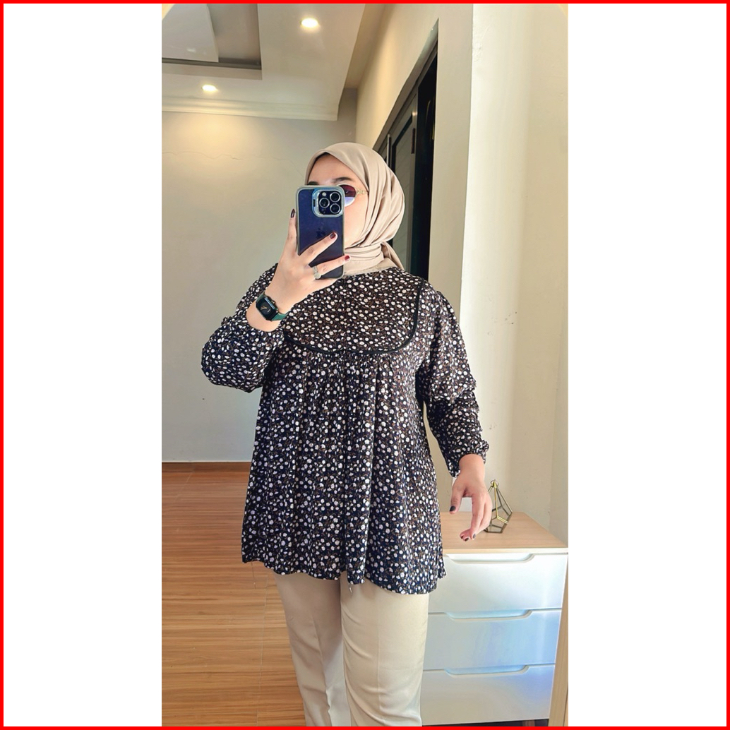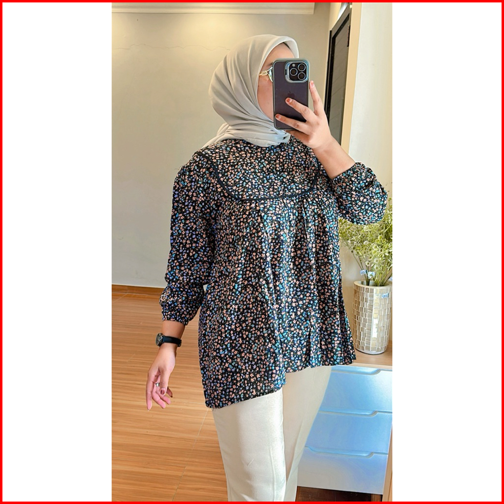 Blouse Wanita Lucu Elegan Rayon Motif Atasan Wanita Terbaru Lengan Panjang Baju Wanita
