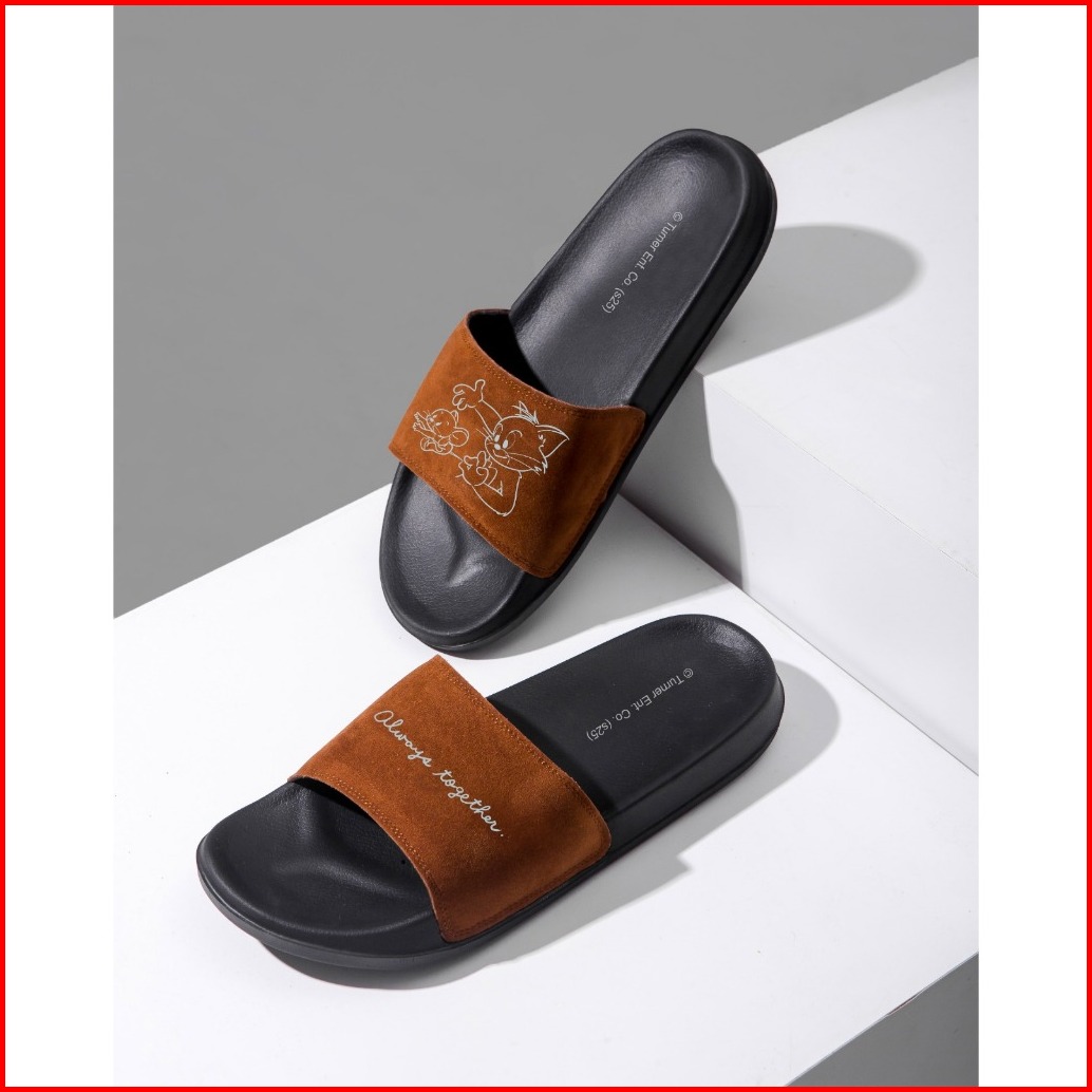 Thesilversky Tom Jerry Suede Always Together Slides Sandal