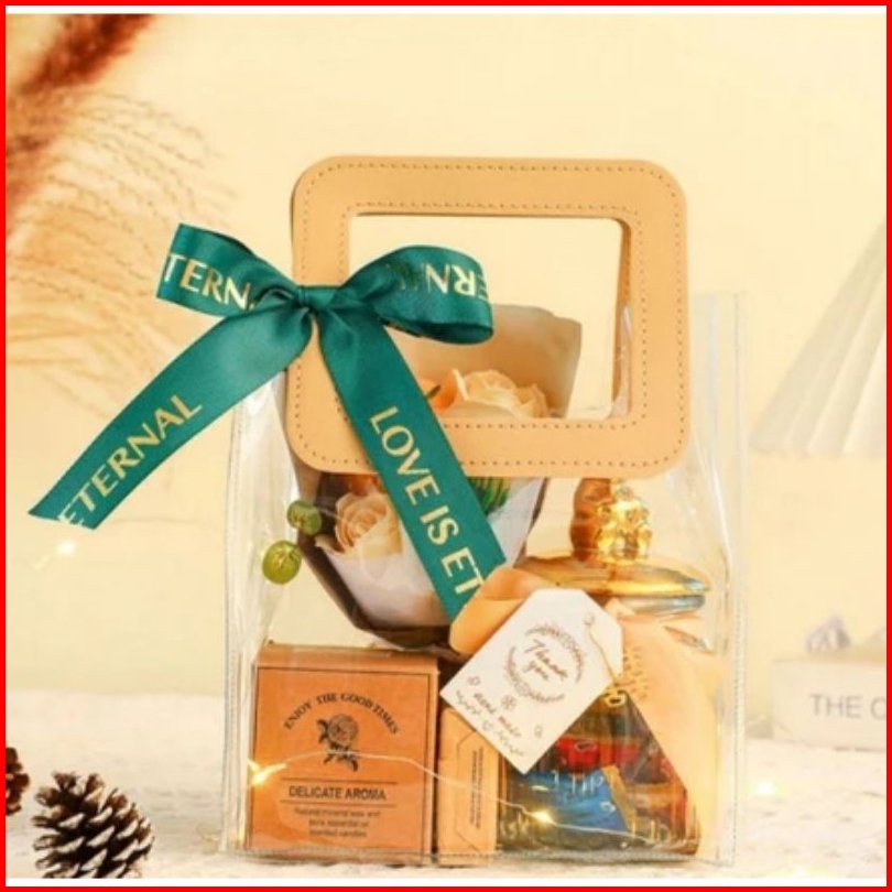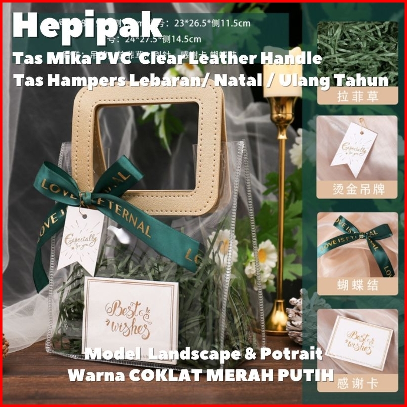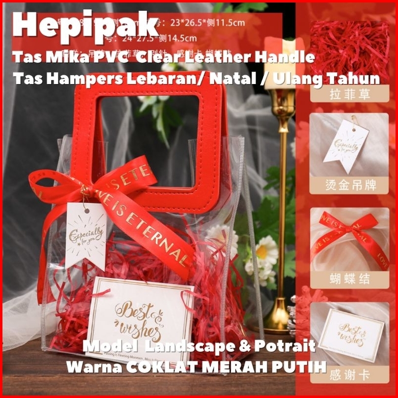Harga 10 Pcs Tas Mika Pvc Bening Gagang Kulit Hampers Gift Bag Ulang Tahun Lebaran Imlek Premium