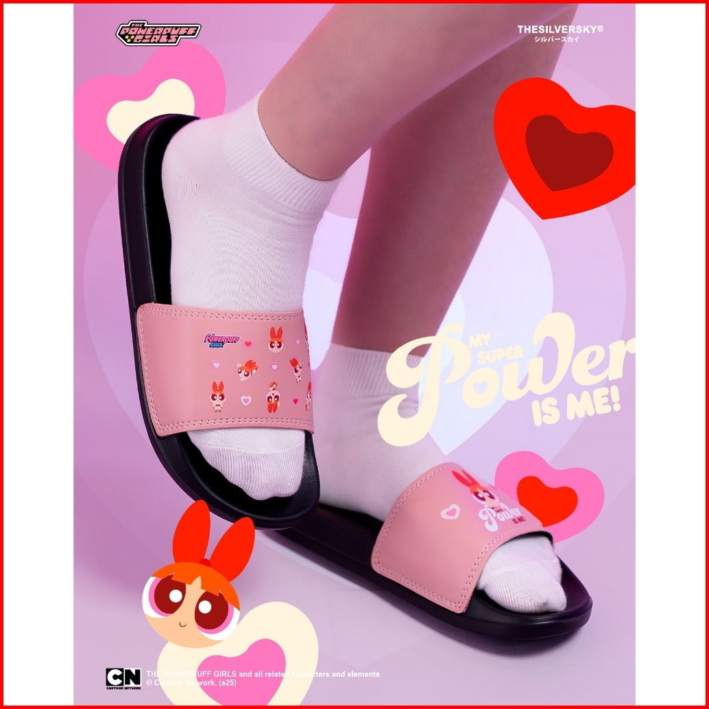 Thesilversky Blossom Powerpuff Girls Slides Sandal Dusty Pink Slip On Wanita Sendal Slipper Premium