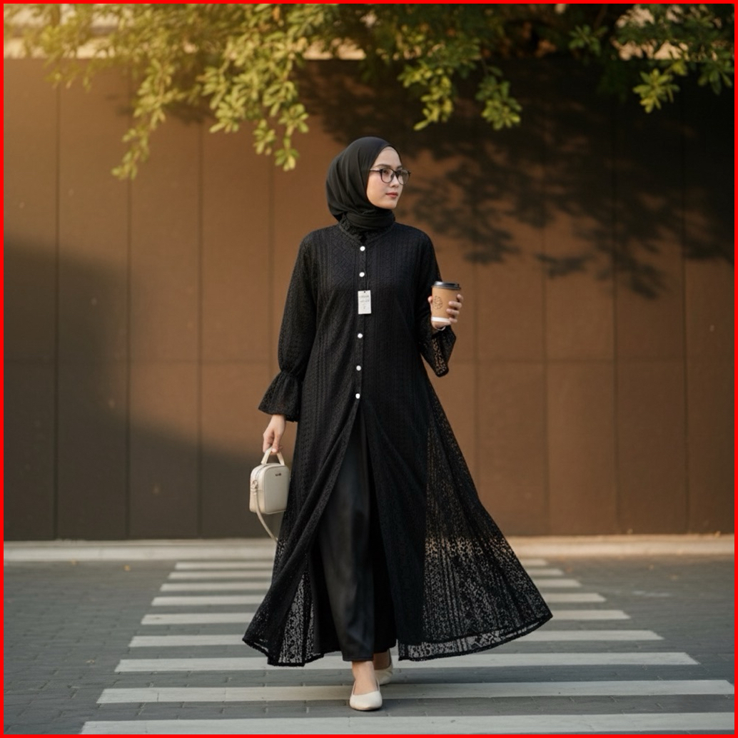 Nerissa Long Tunik Borkat Wanita - Outer Burkat Cantily - Midi Dress Brukat Lebaran 2026 Crocus