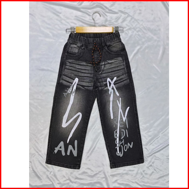 Skena Panjang Jeans Stretch Anak Usia 4 - 12 Tahun Bahan Jeans Stretch Denim Premium Model Wizker Motif Sablon Tebal New