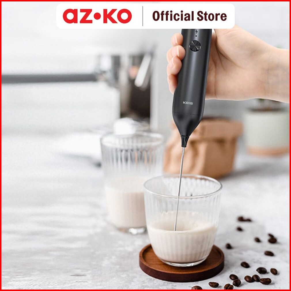 Azko Kris Milk Frother Handheld 500 Mah - Hitam Pembuih Susu Pengaduk Kopi Cokelat Cappucino Alat Pembuat Busa Susu Perl