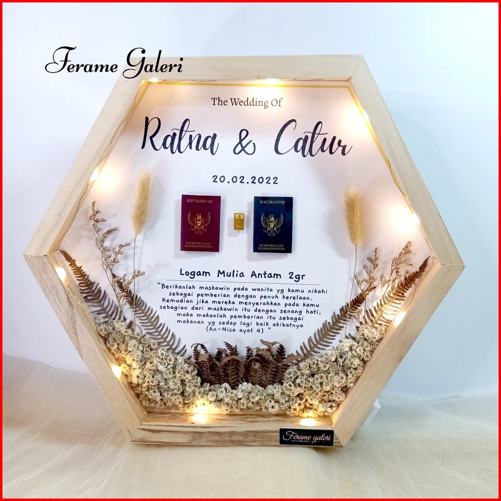Aji13 - Ready Stock Mahar Pernikahan Rustic Bingkai Hexagonal Antipecah Express Free Custom Kado Pernikahan By Ferame Ga