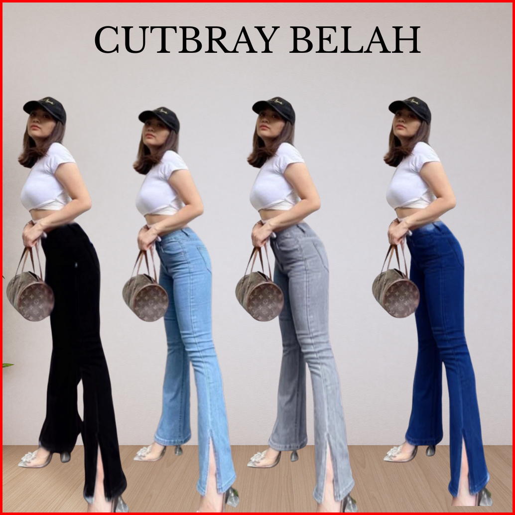 Celana Jeans High Waist Wanita Cutbray Belah Samping Mifafashion08