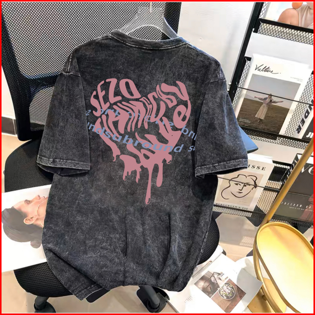 W888 A0518-forteid.print-bp Pink Hitam Washed T-shirt Oversize Pink Love Kaos Baju Couple Pasangan Hitam Atasan Kaos Kor
