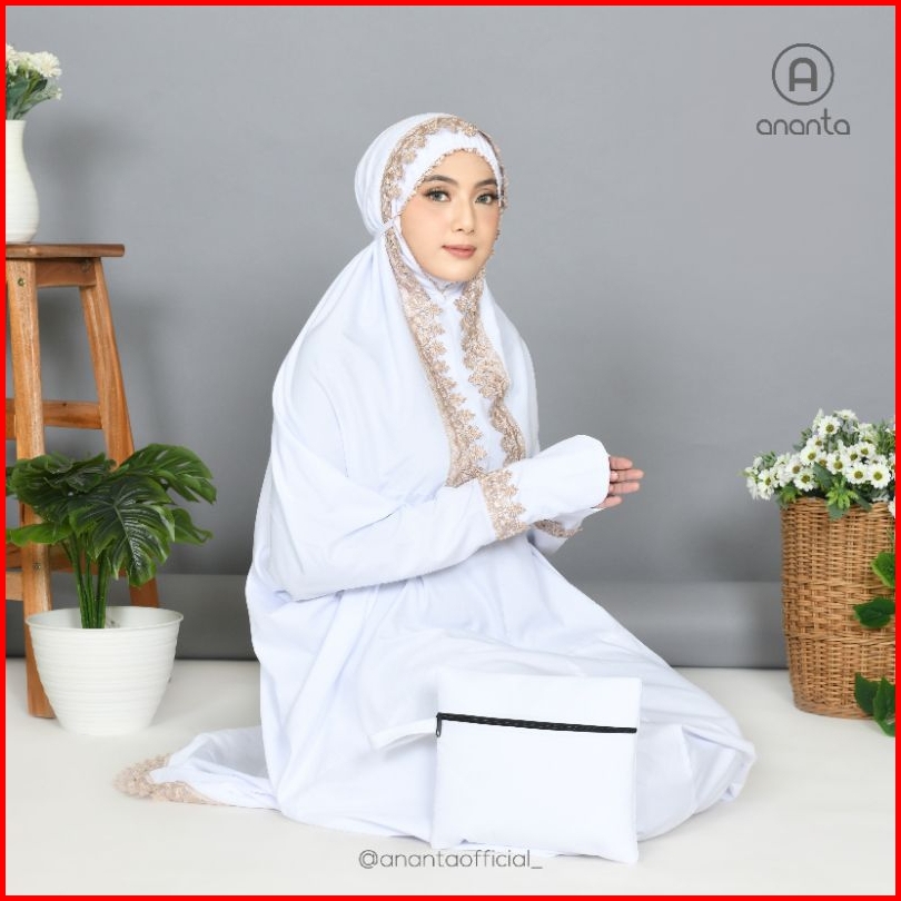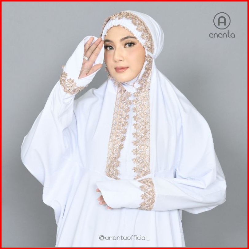 Mukena Terusan Dewasa Katun Putih Renda Mewah