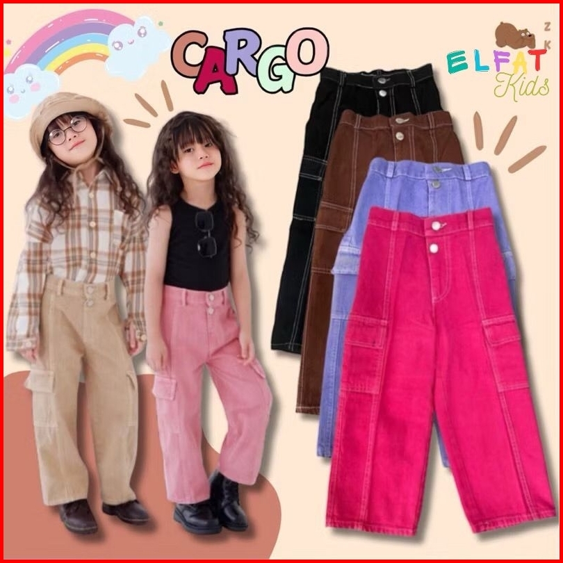 Cargo Pants Anak Celana Jeans Kulot Cargo Fashion Anak Perempuan 2-7 Tahun