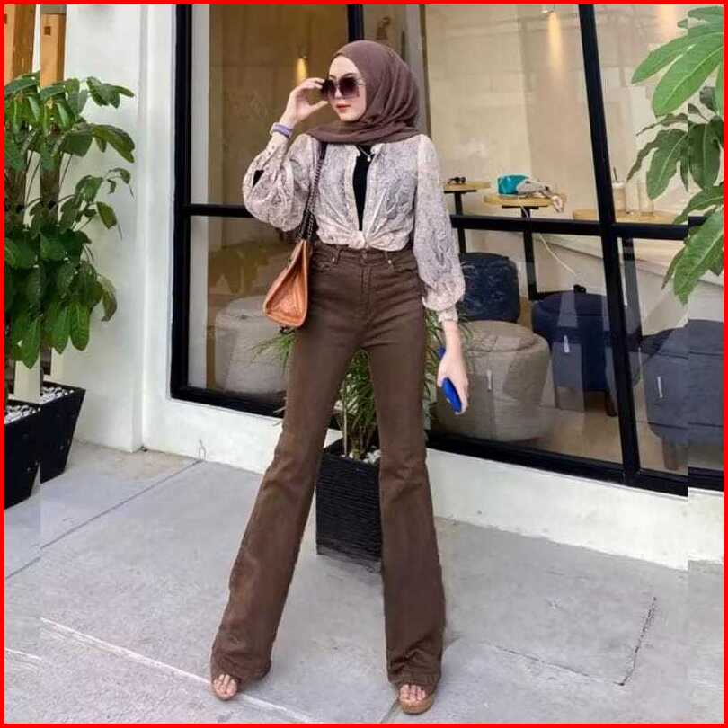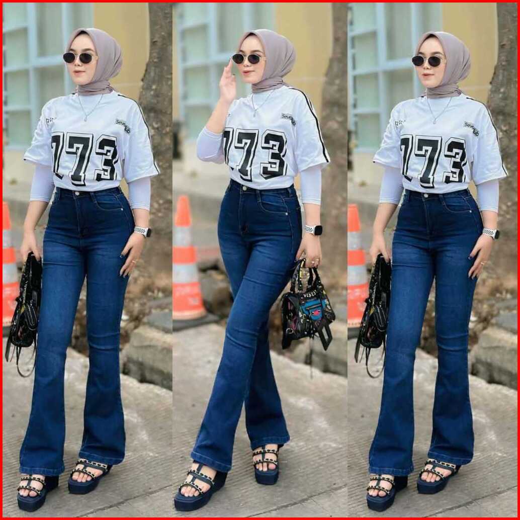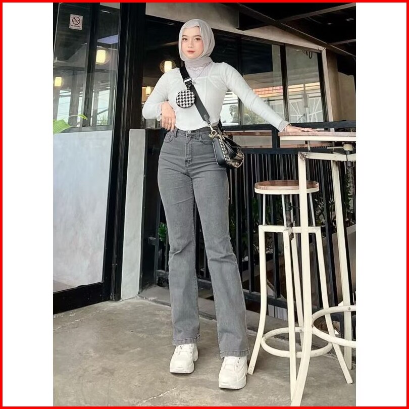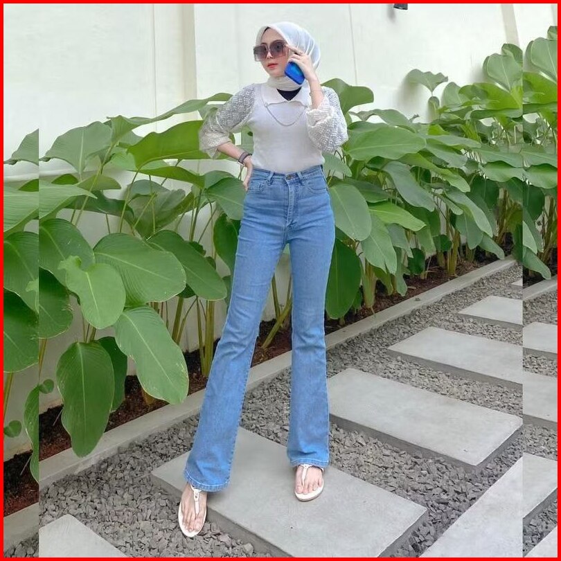 Celana Jeans Wanita - Celana Cutbray Highwaist - Jeans Cutbray Strecth Melar Kekinian