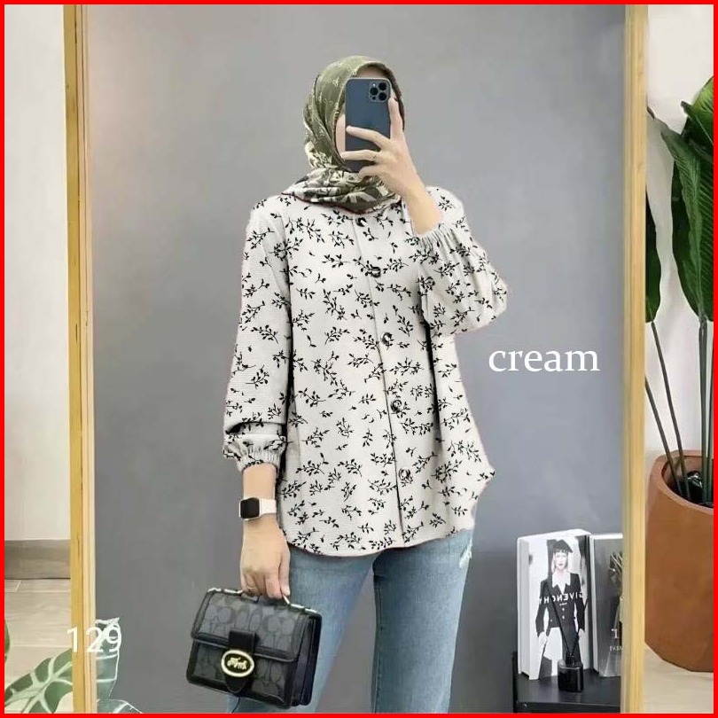 New Baju Blouse Atasan Wanita Blus Motif Bunga Lengan Panjang