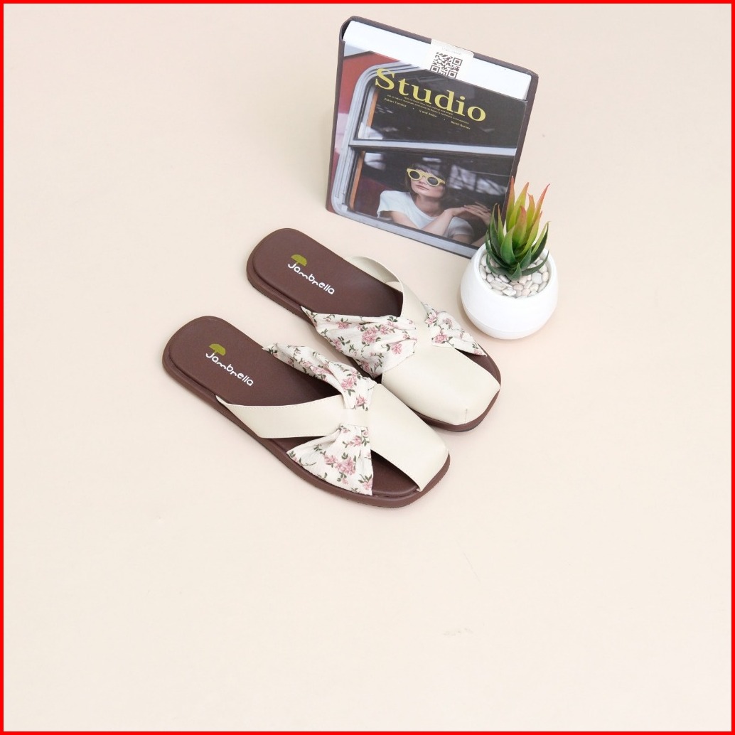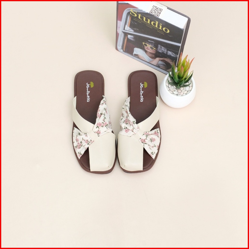 Jambrella Liz Bunga Cream Sandal Flat Wanita Sandal Cewek Trendy