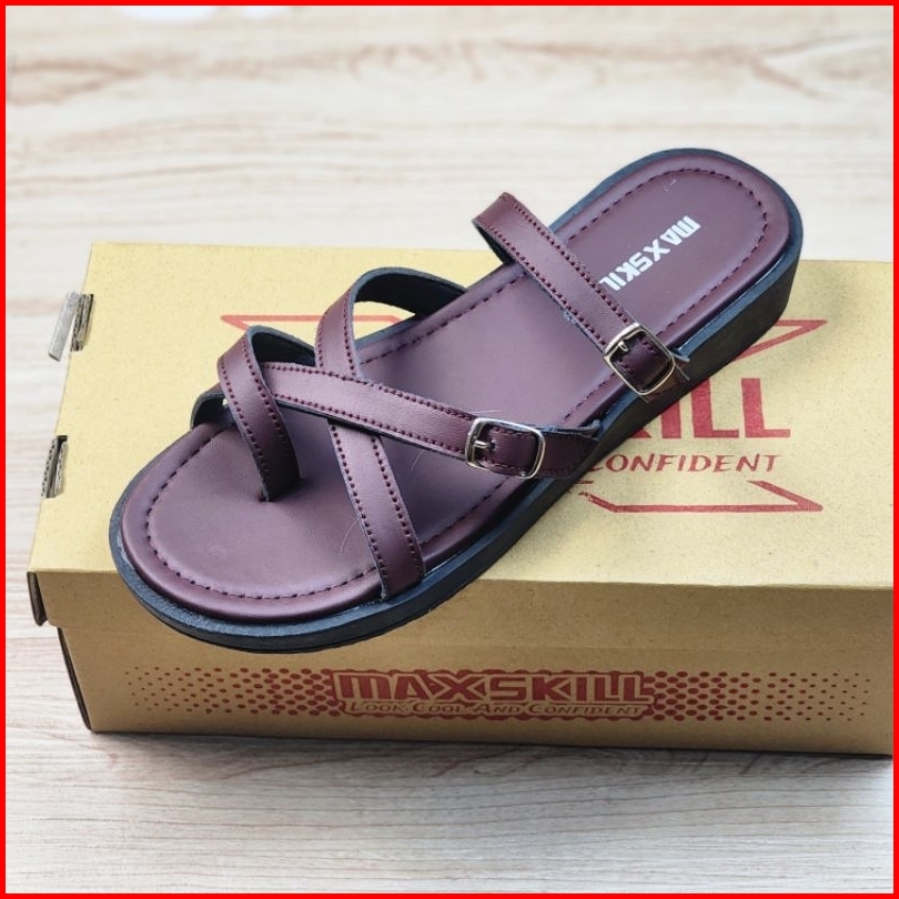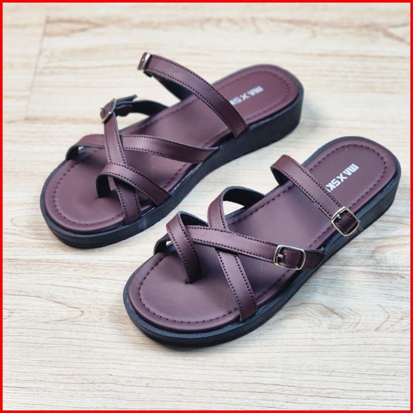Maxskill Inara Burgundy Sandal Wanita Sendal Wedges Tali Gesper