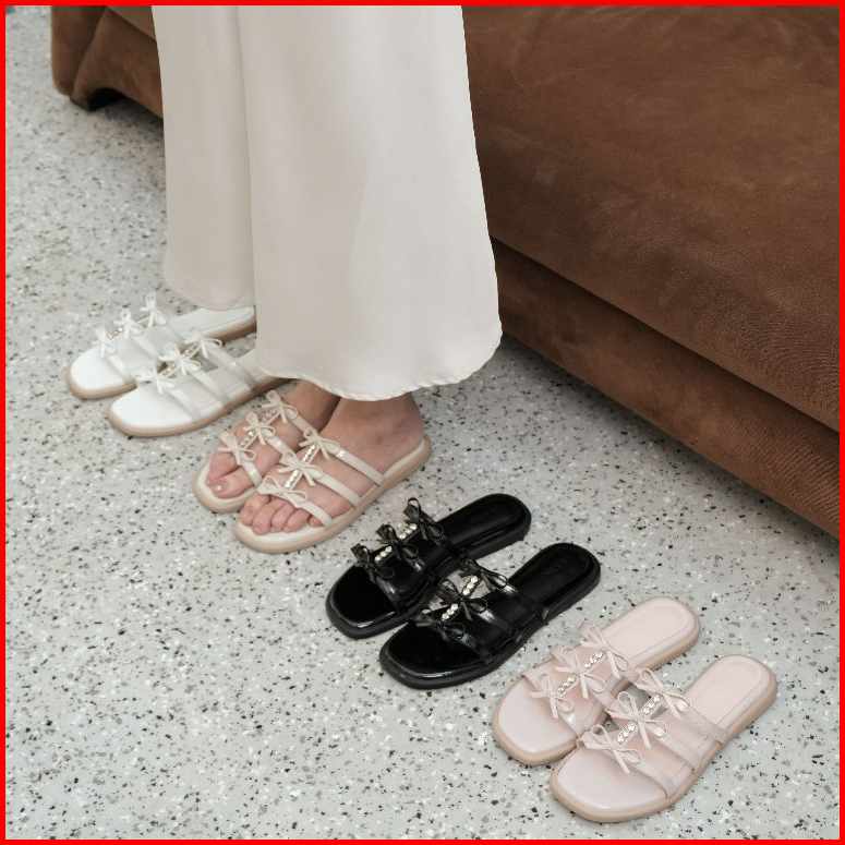 Aline Sabrina Sandal Slop Teplek Flat Shoes Wanita Korean Style