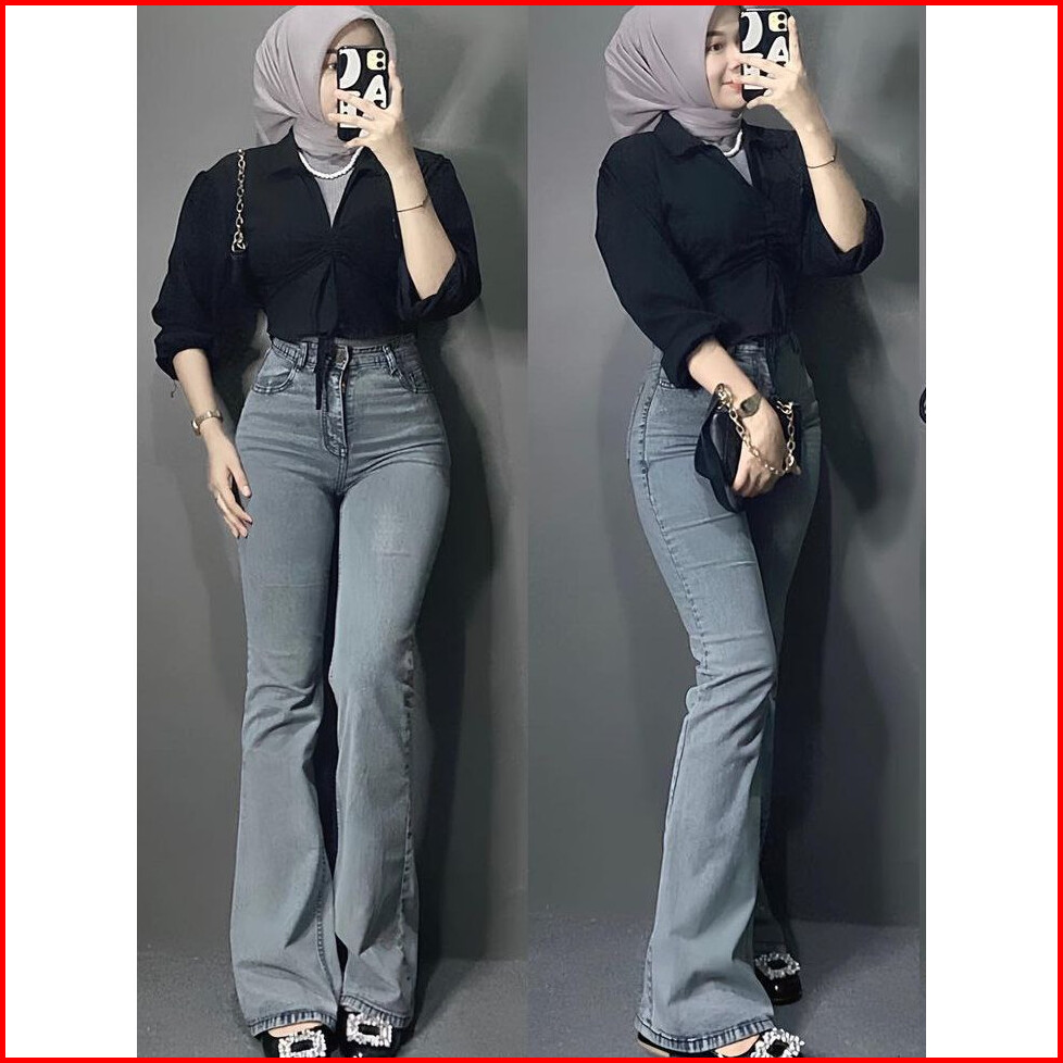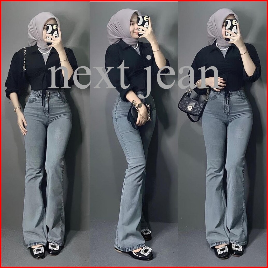 Next Jean Celana Jeans Cutbray Abu Grey Wanita Highwaist Terbaru 2025 Bahan Melar