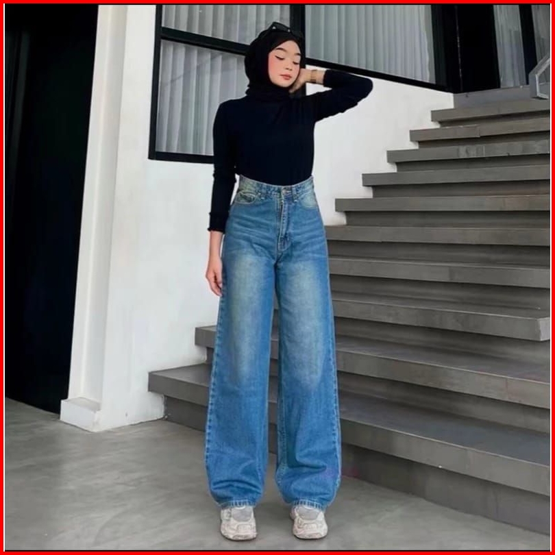 Gw - Highwaist Jeans Baggy Loose Celana Jeans Wanita Premium