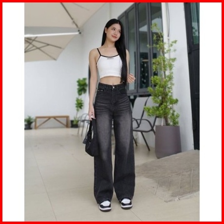 Celana Baggy Loose Jeans Retro Wanita Highwaist Baggy Loose Jeans Wisker Korean Retro Non Strech Premiun Quality