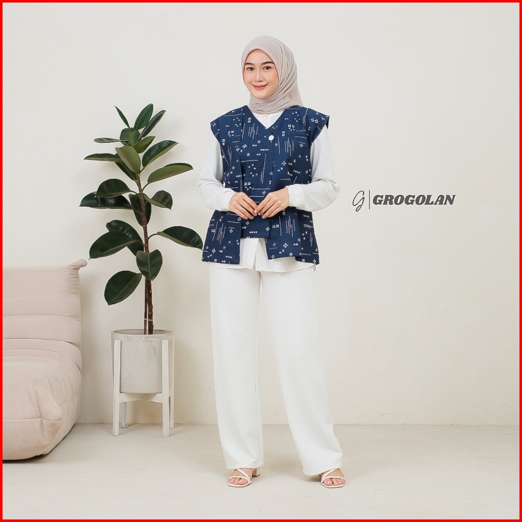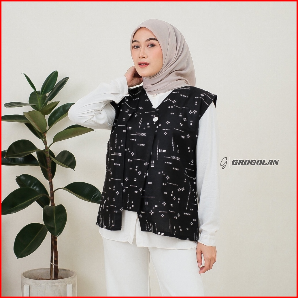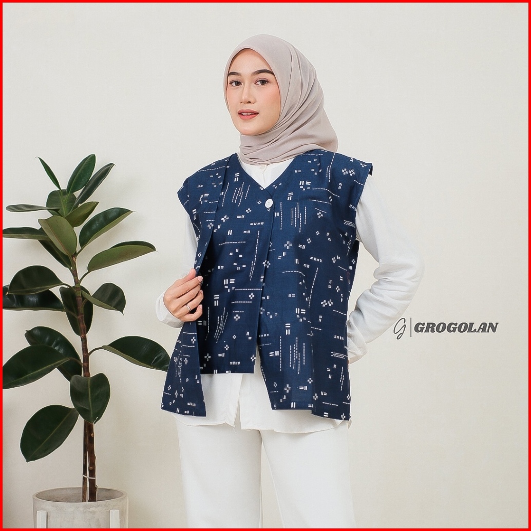 Grogolan Vest Outer Rompi Batik V Neck Atasan Wanita Tradisional