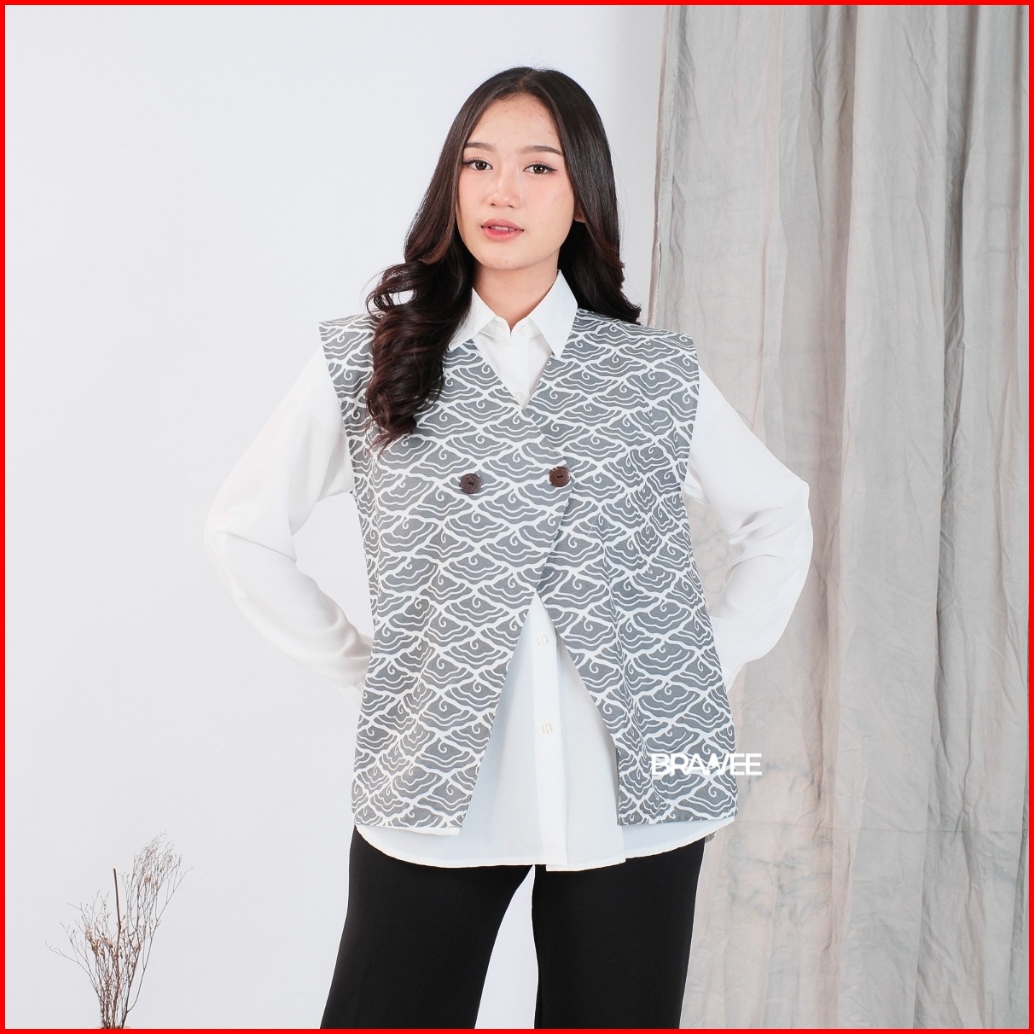 Outer Vest Rompi Batik Wanita Modern Kancing Karin