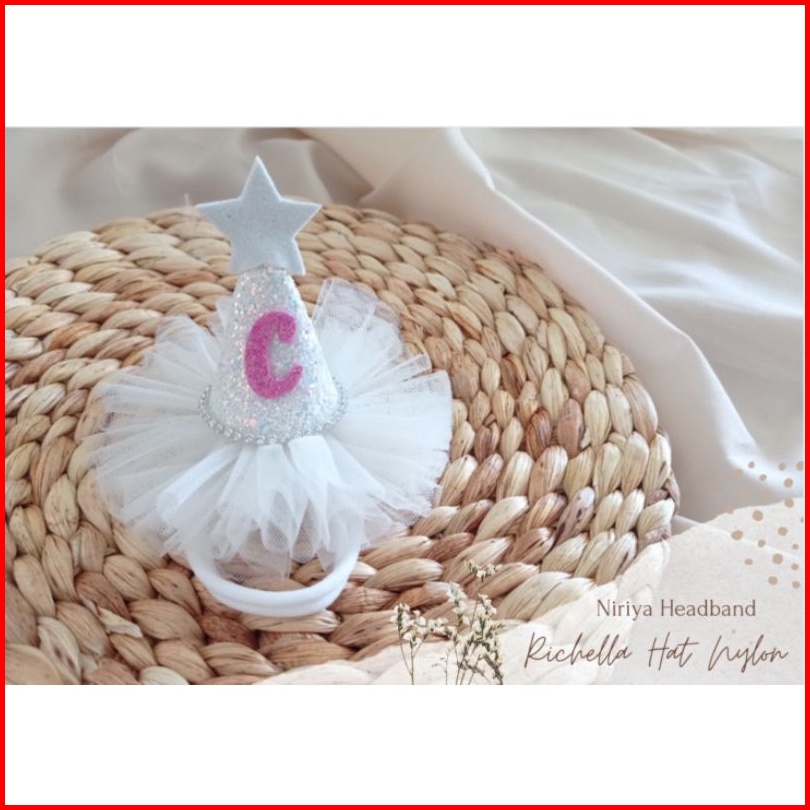 Richella Birthday Hat Topi Ulang Tahun - Nylon Headband Bayi Bandana Anak Bando Inisial Nama