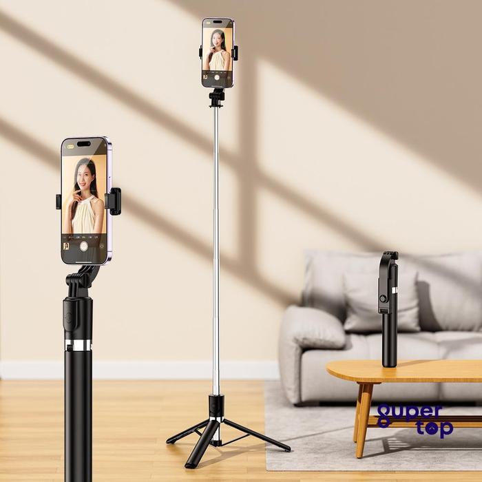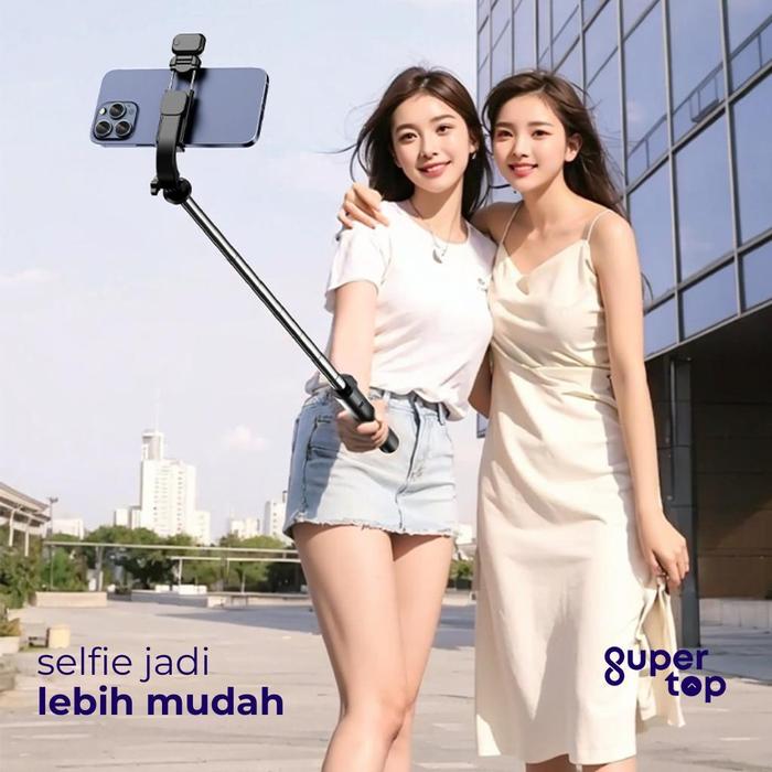 Tongsis Tripod 1,7 Meter Bluetooth + Led Lights 360 Aluminium Steel Stick Selfie Vlog Live Stand Phone