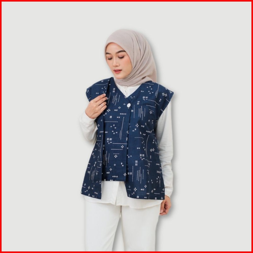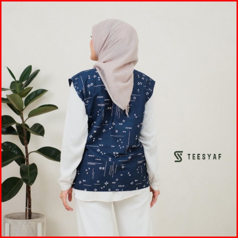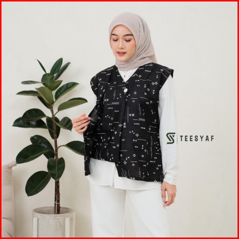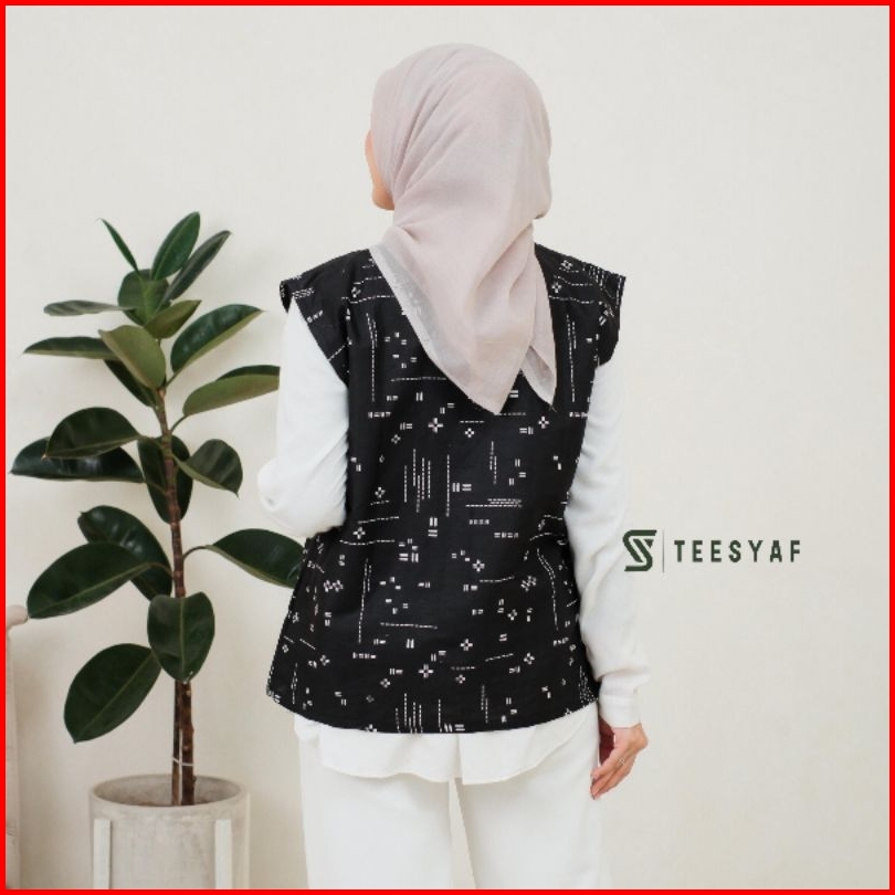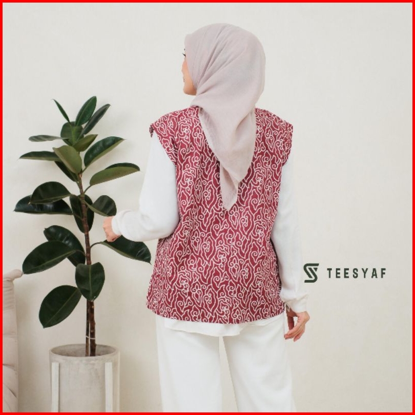 Teesyaf - Vest Batik Outer Rompi Atasan Batik Wanita V Neck Motif Tetris Mega Mendung