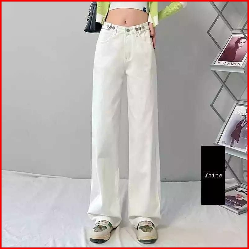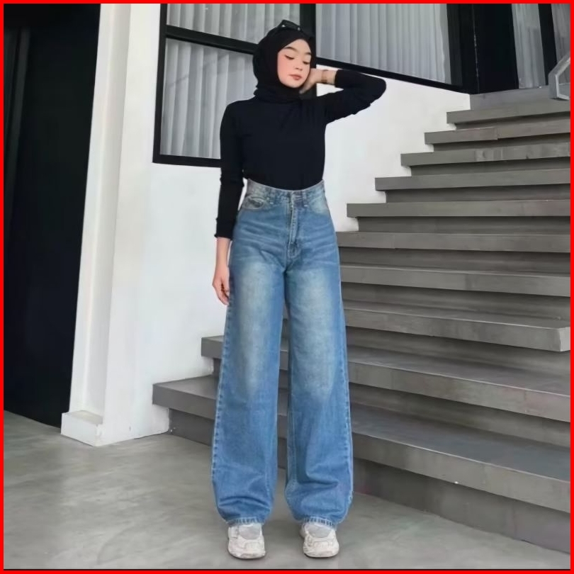 Kulot Jeans Highwaist Loose Denim Wanita Skoder Baggy Nonstret Korea Wisker Biru Retro Hangover