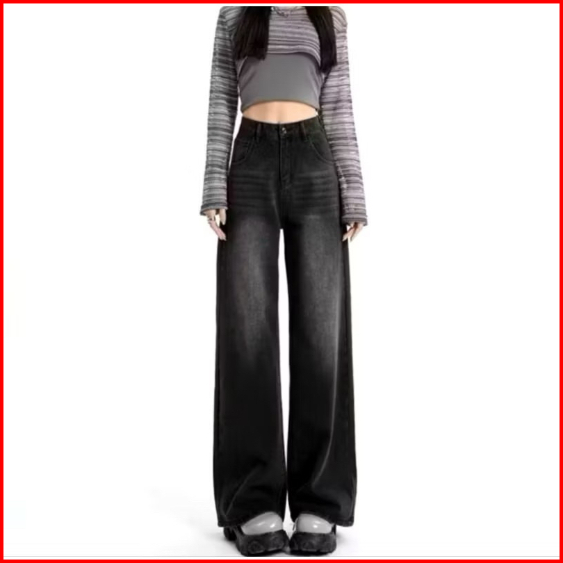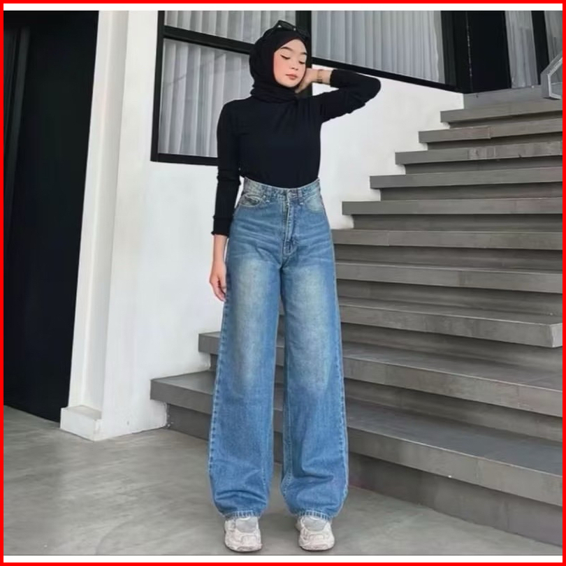 Celana Jeans Loose Highwaist Wanita Korean Skena Style Retro Premium Denim Celana Baggy Loose Jeans